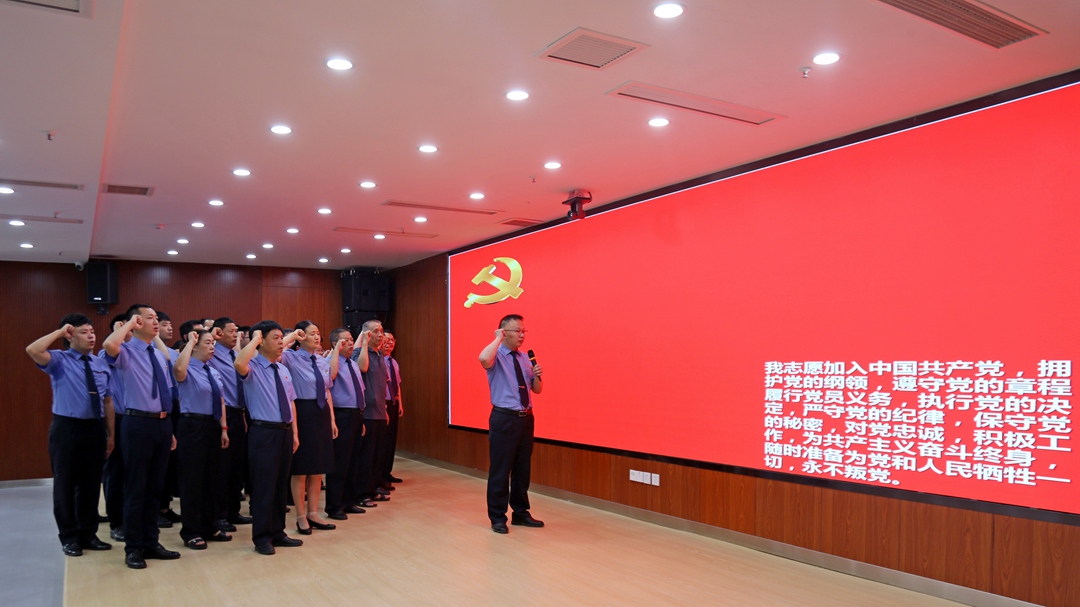 “我志愿加入中国共产党……随时准备为党和人民牺牲一切,永不叛党。”阮能文检察长带领全体党员高举右拳,面对鲜红的党旗和庄严的誓词,庄严宣誓。铿锵有力的宣誓,表达了大家对党的无限忠诚、热爱和听党话、跟党走的坚定决心。