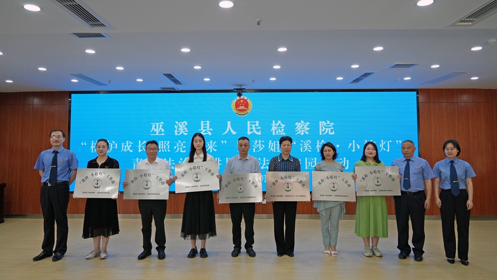 5月28日,巫溪县检察院举行莎姐“溪检·小桔灯”护航未成年人项目启动仪式,成立莎姐“溪检·小桔灯”工作室和青年法治宣传团,与县教委等7家成员单位挂牌设立莎姐“溪检·小桔灯”工作站,共同会签《关于联合建立未成年人综合救助工作协作机制的实施意见(试行)》。