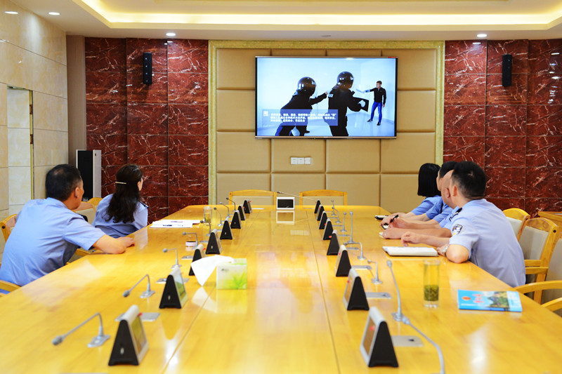 随后,大家还一起观看了警组协同控制单一持利器高危人员实战情景演练相关视频。