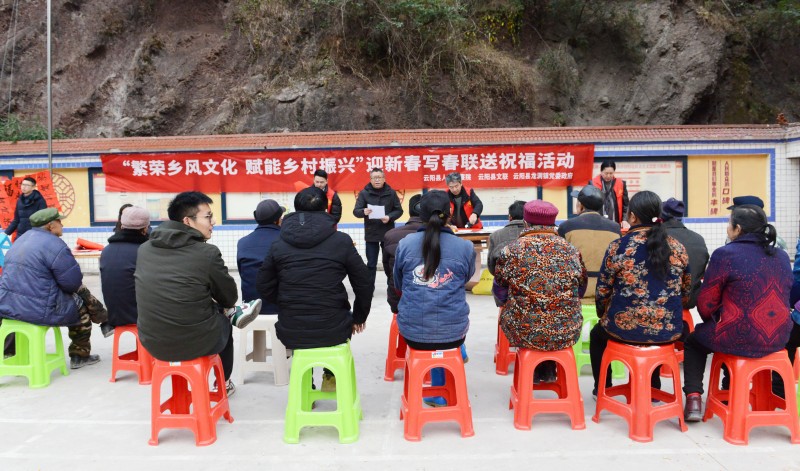 1月8日,我院联合县文联、龙洞镇党委政府共同举办“繁荣乡风文化,赋能乡村振兴”迎新春写春联送祝福活动,为朝阳村、高建村村民现场撰写春联。