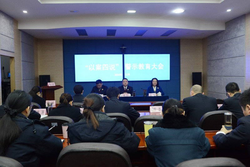 12月5日,我院召开“以案四说”警示教育大会,在家院领导、县纪委监委驻县委政法委纪检监察组组长及全体干警参会。