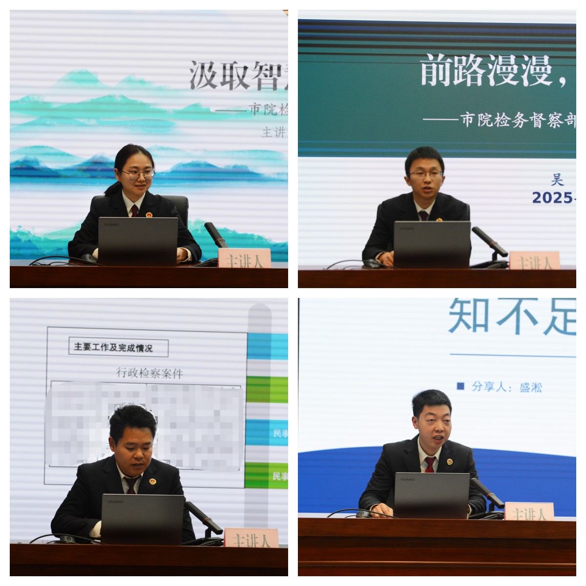 4名青年干警分享了到市院顶岗锻炼、跟班学习情况,既介绍了各自所学所悟,又结合自身岗位实际明确了下一步工作思路举措,有效促进了青年干警间的学习交流和共同提升。