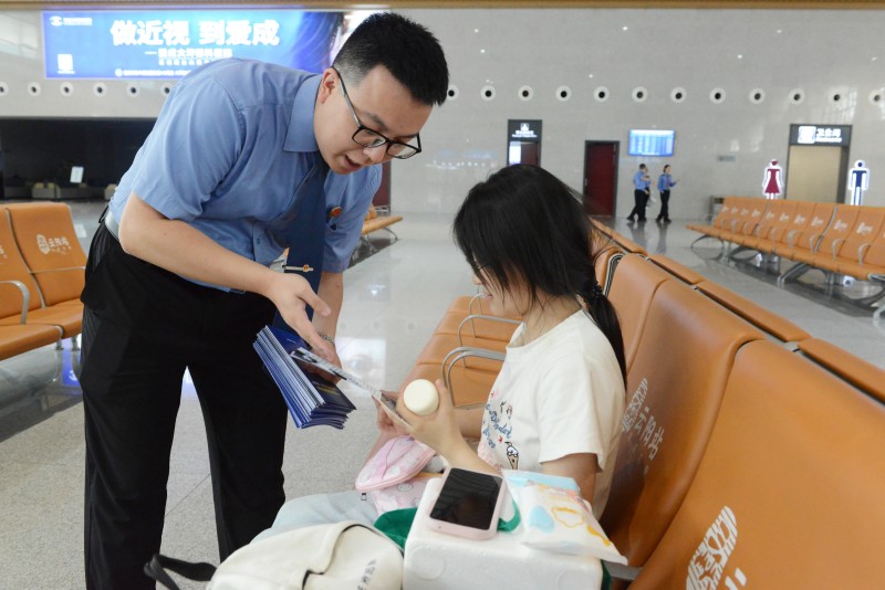 在高铁站候车大厅,通过摆放宣传展板、发放禁毒宣传折页等方式,干警们重点向旅客讲解了新型毒品含有依托咪酯电子烟的伪装性及其严重危害,阐明涉毒的法律后果。