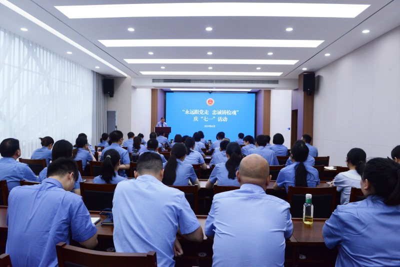 为庆祝中国共产党成立104周年,6月30日,我院开展庆“七一”活动暨深入贯彻中央八项规定精神学习教育专题党课,在家院领导、全院干警参加活动。