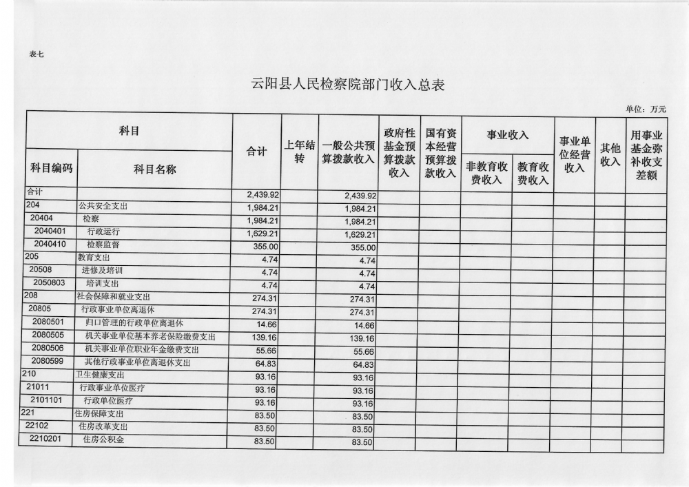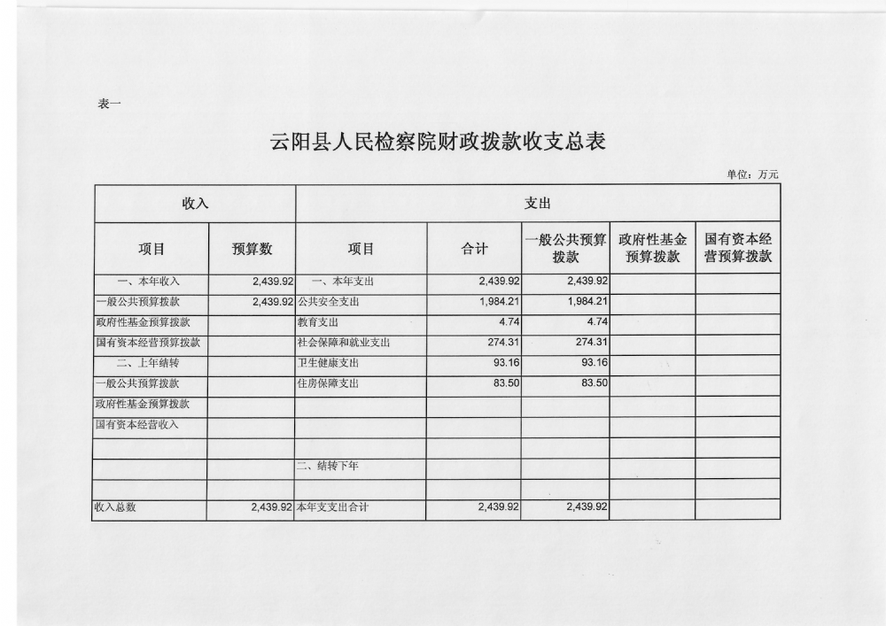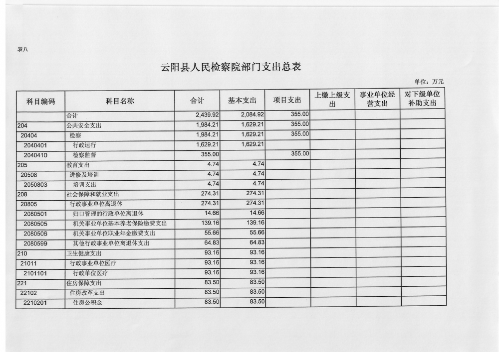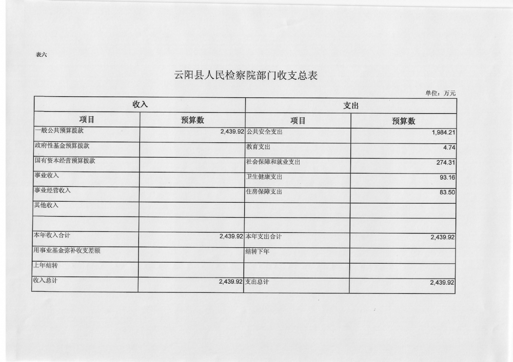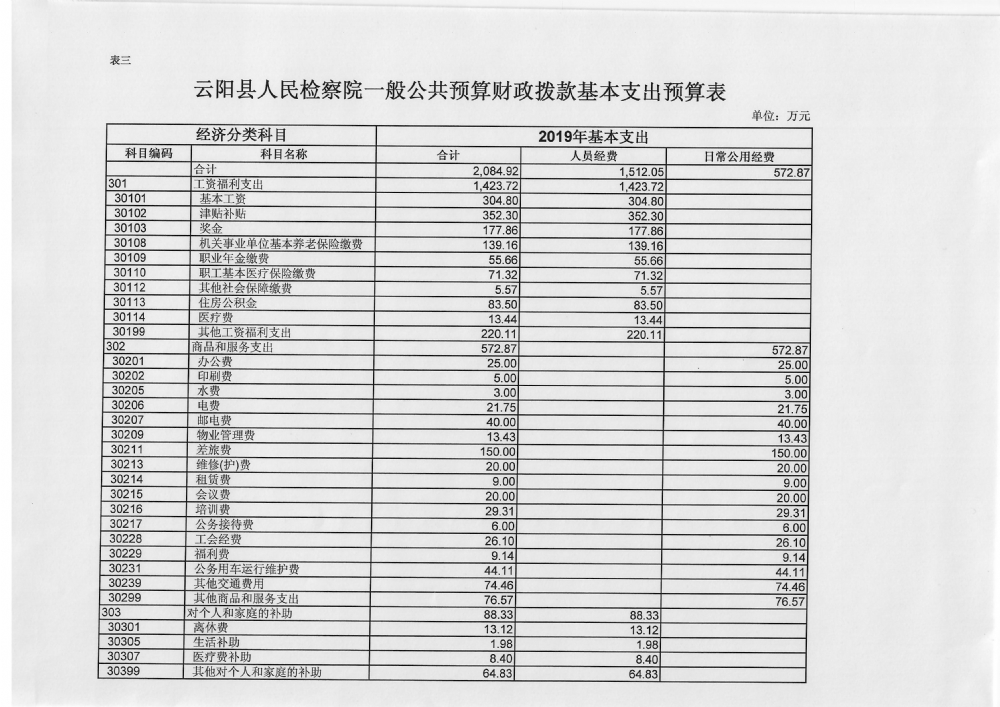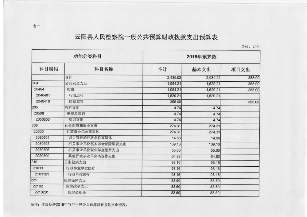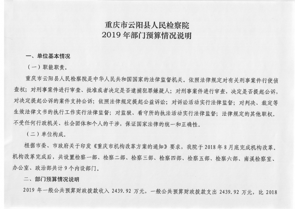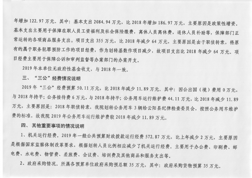 云阳县人民检察院2019年预算公开