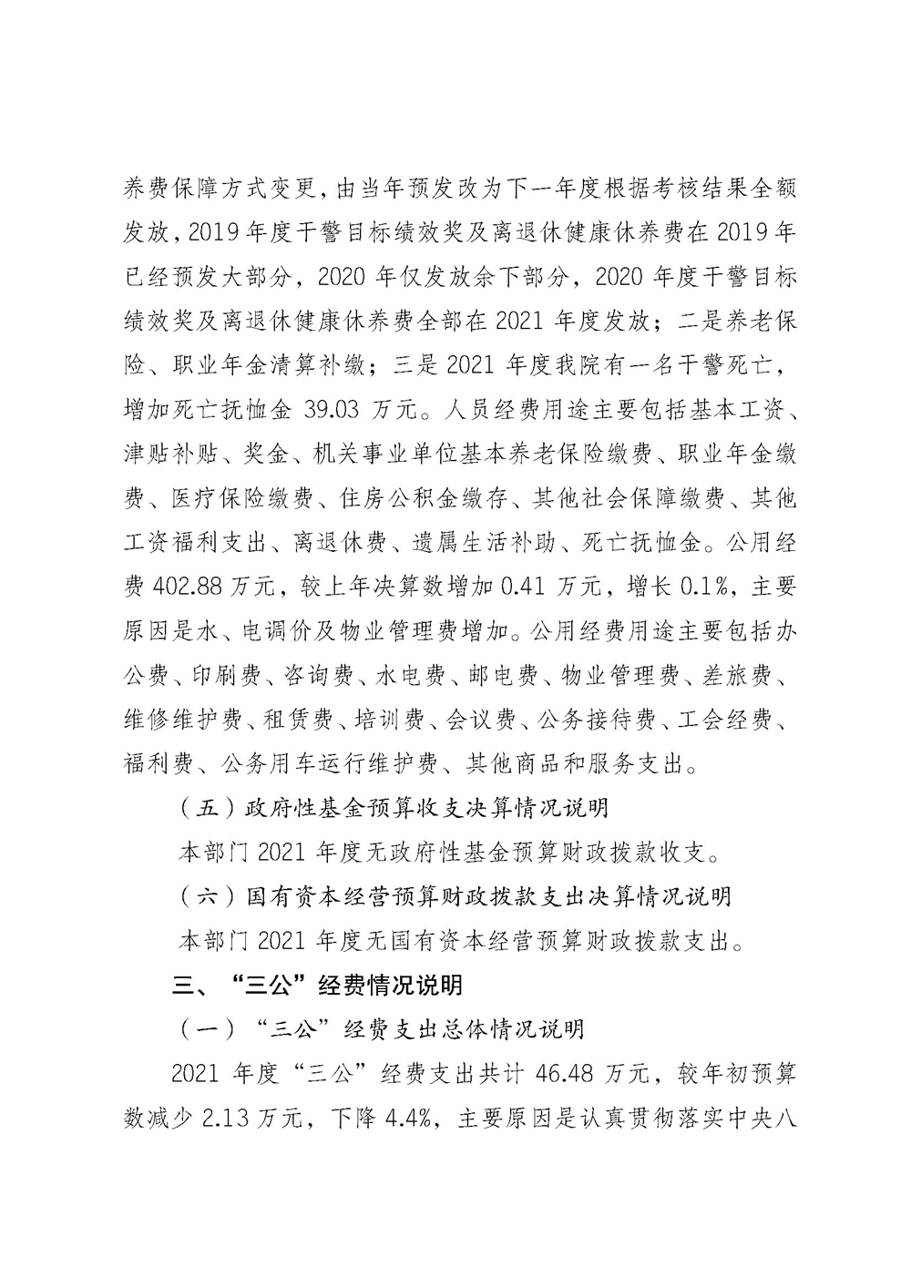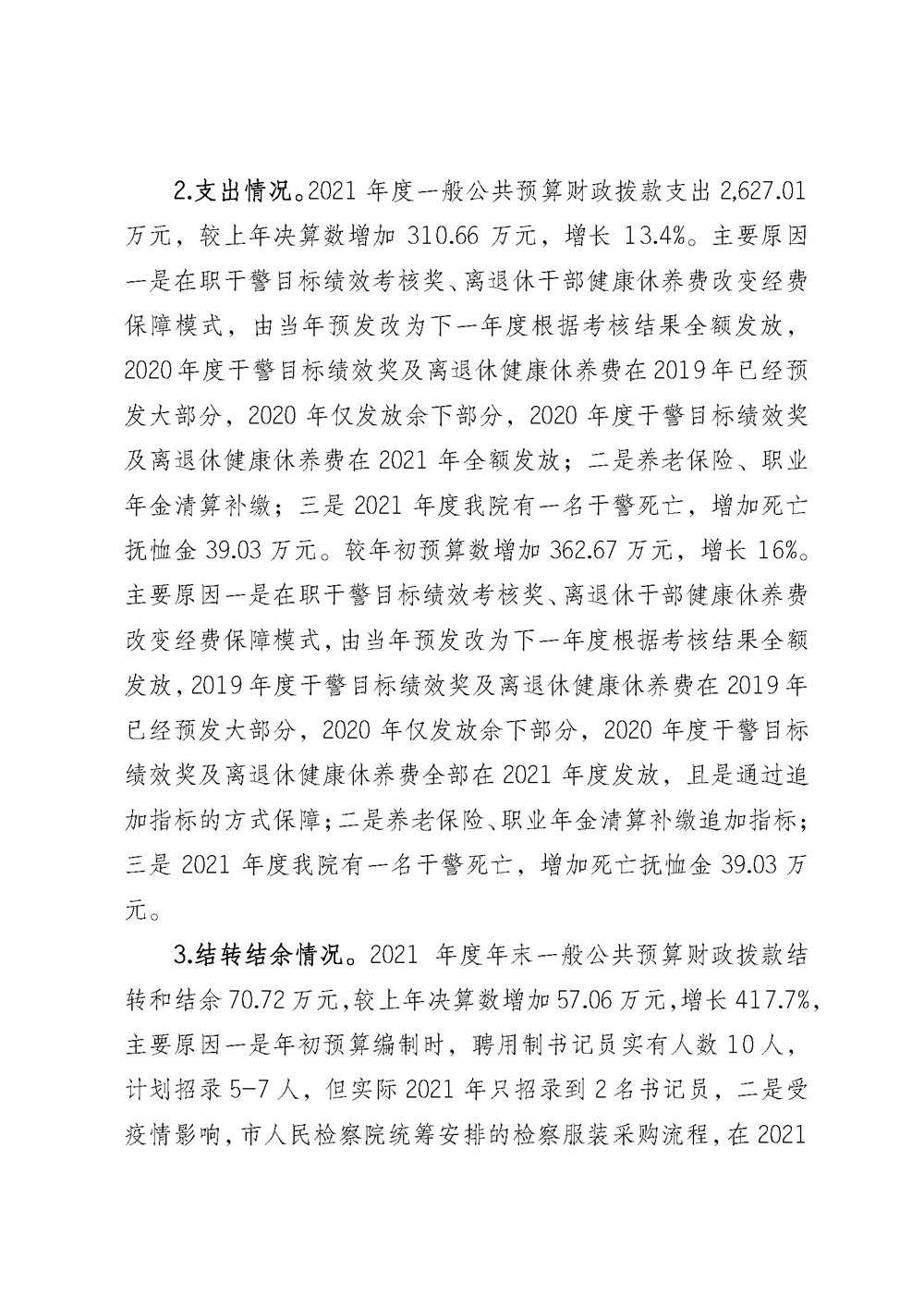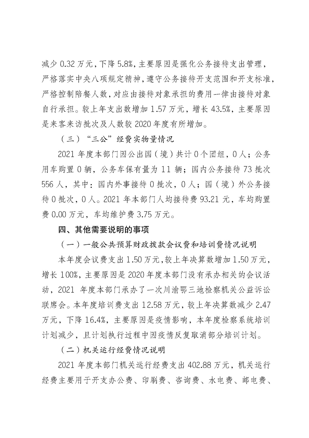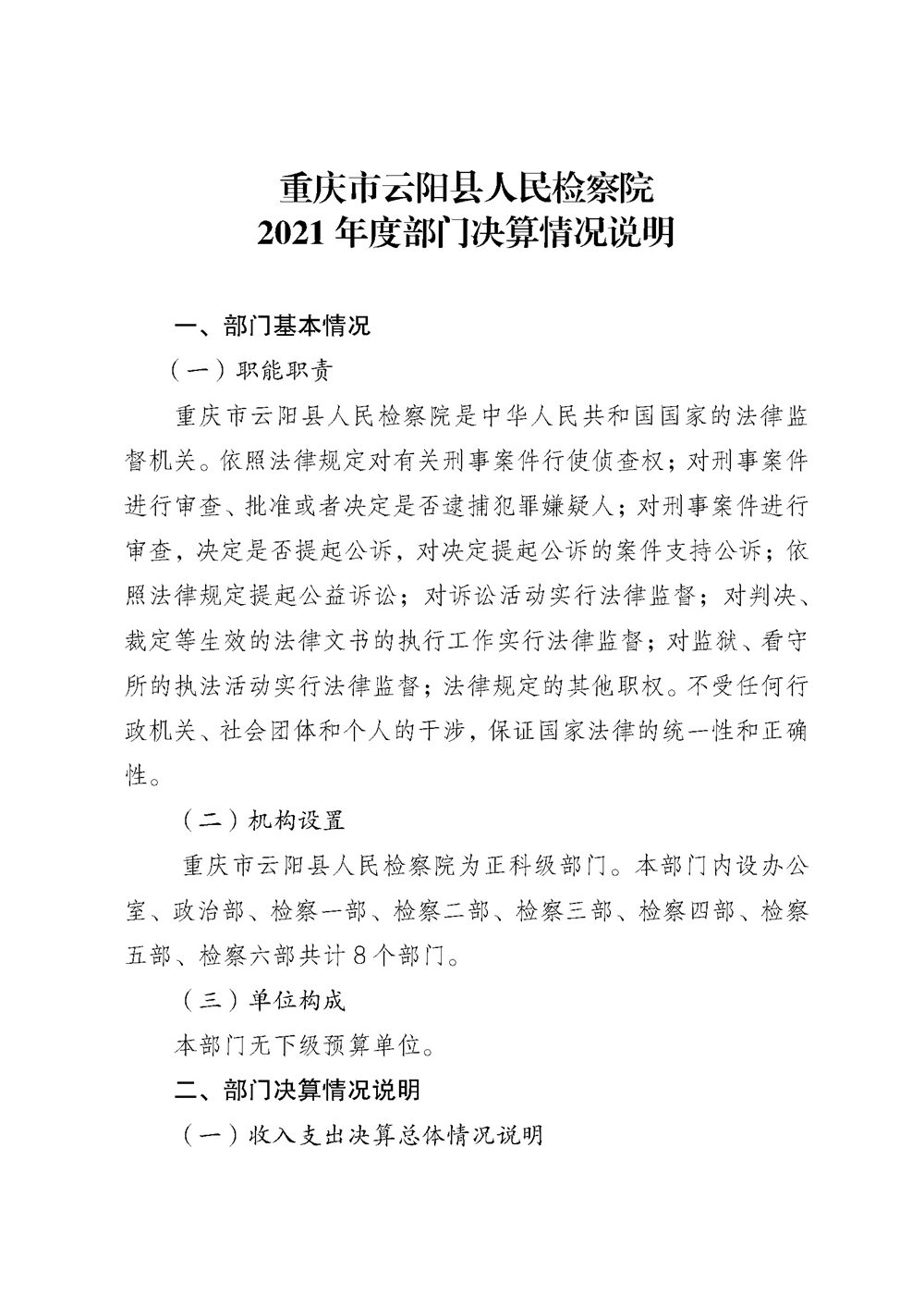 重庆市云阳县人民检察院2021 年度部门决算情况说明