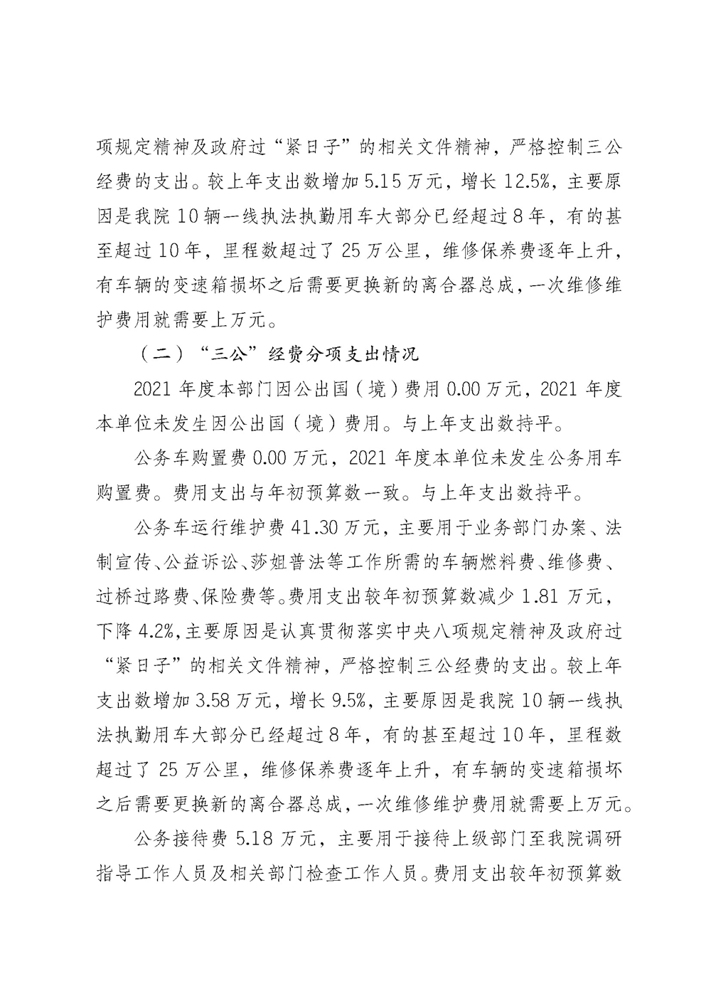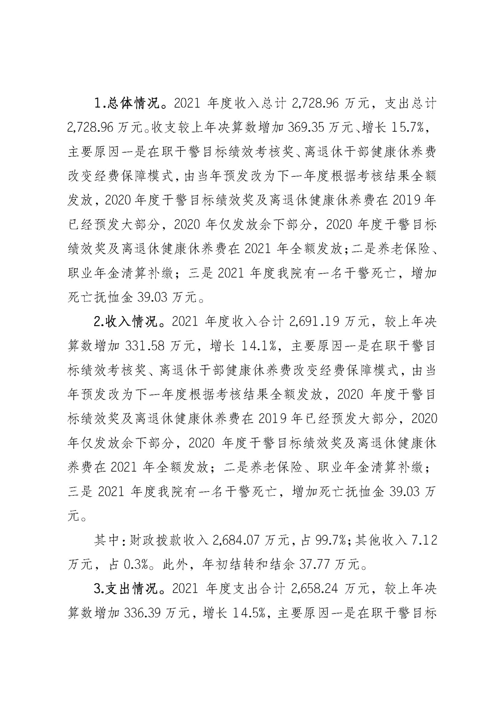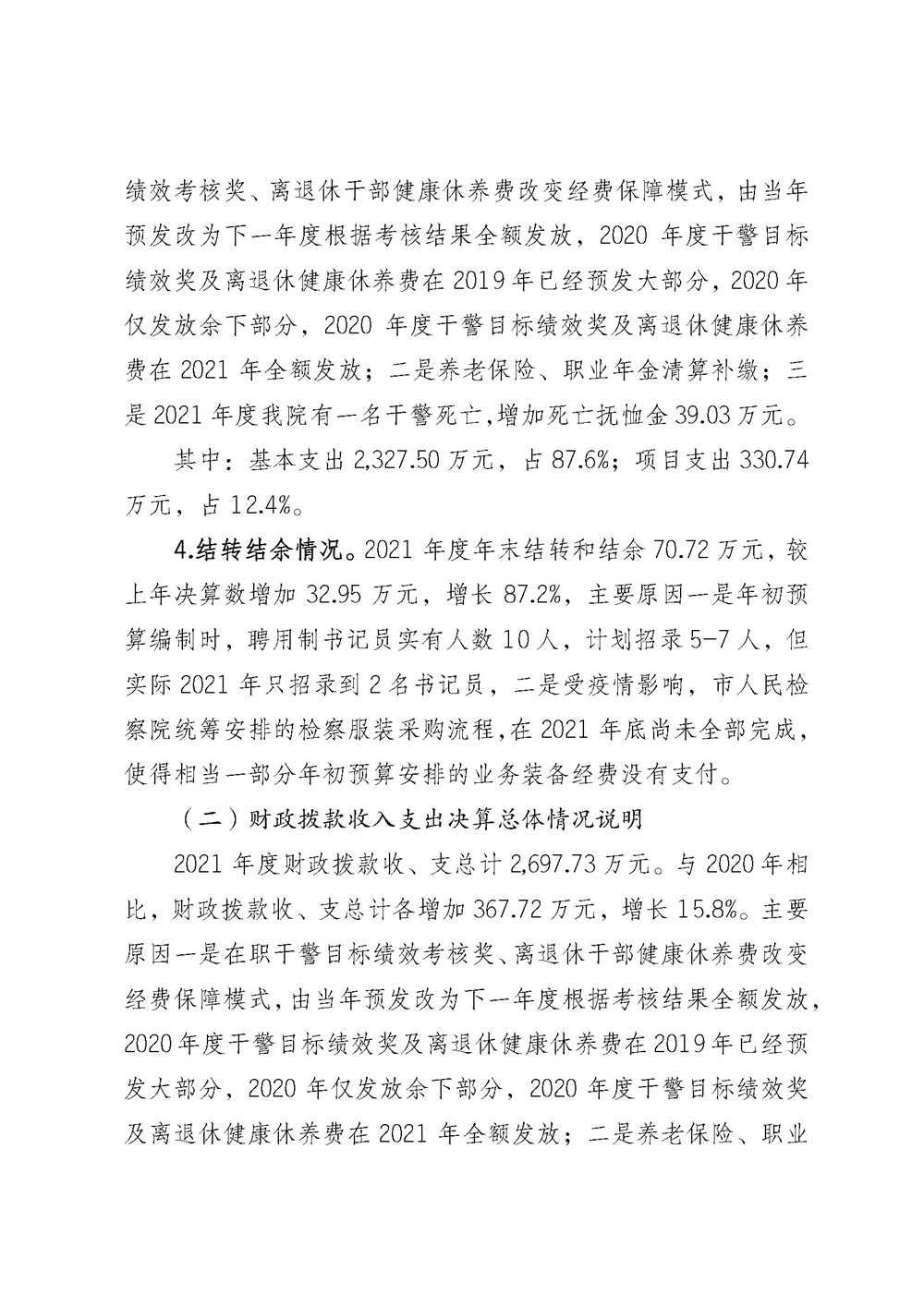 重庆市云阳县人民检察院2021 年度部门决算情况说明