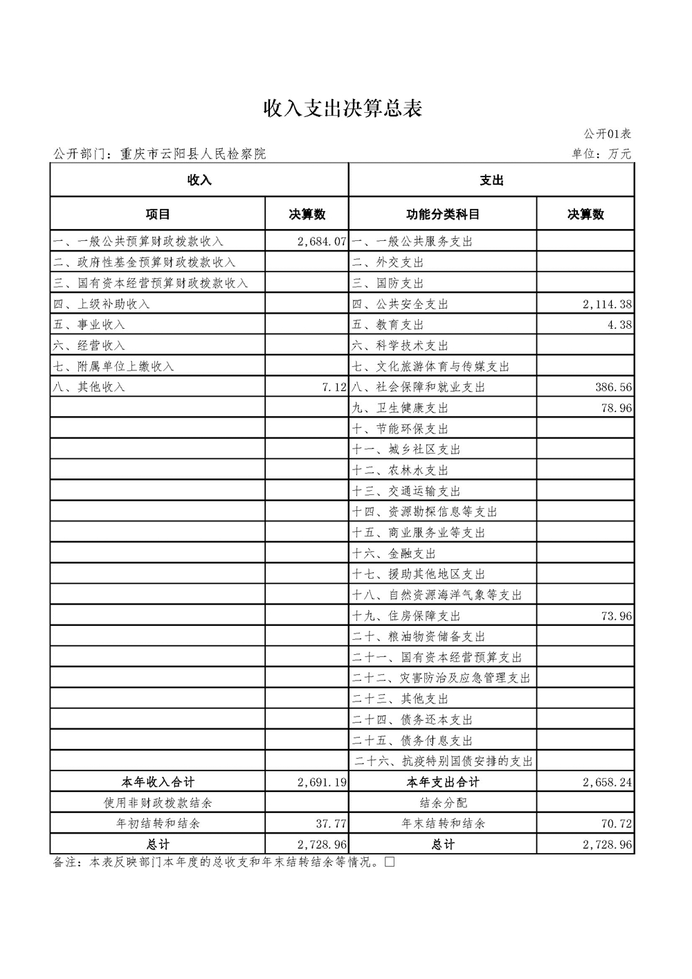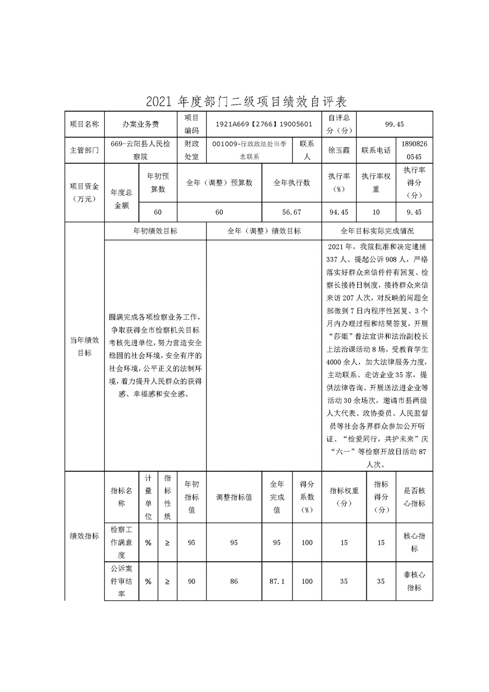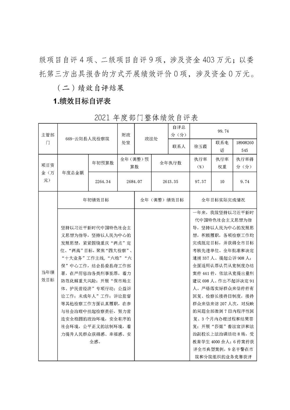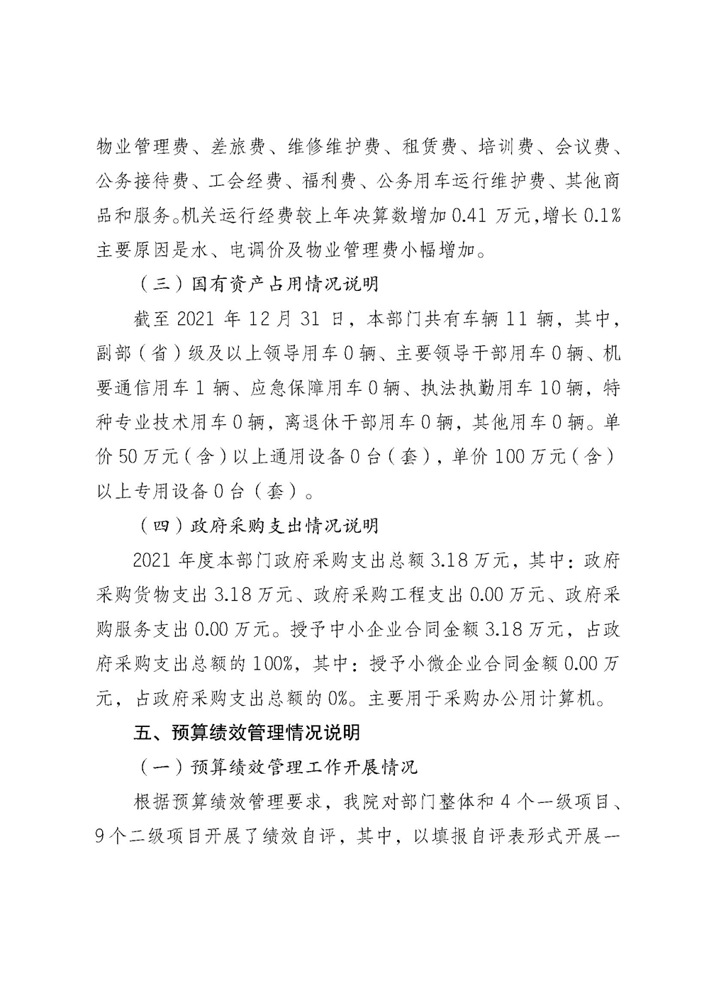重庆市云阳县人民检察院2021 年度部门决算情况说明