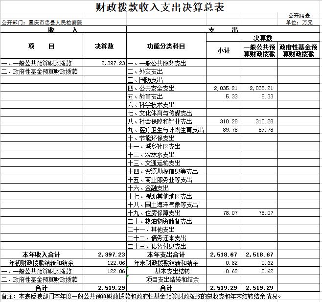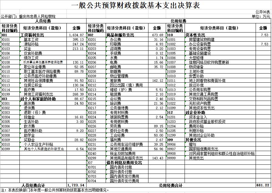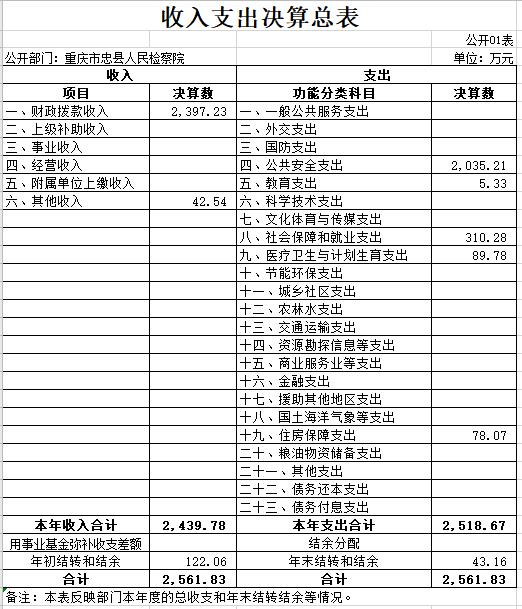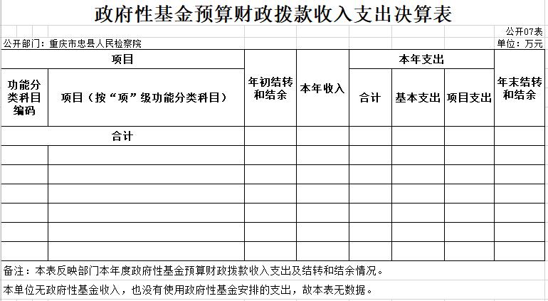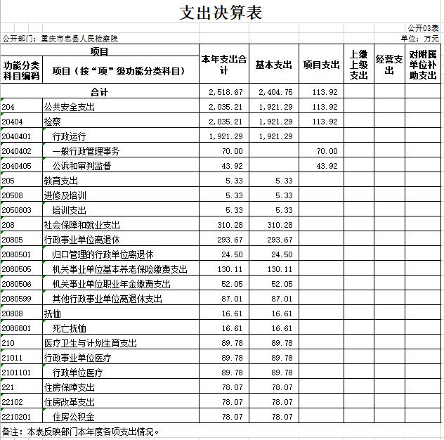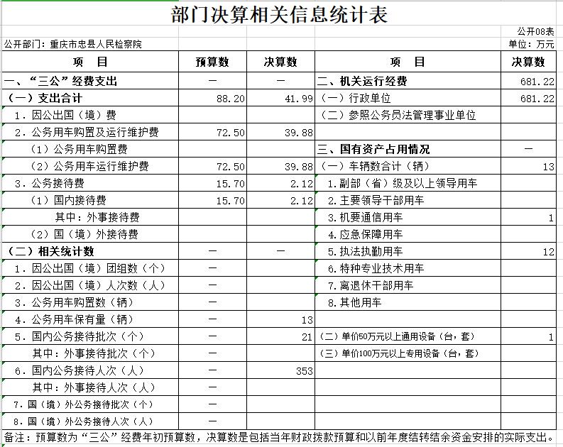 重庆市忠县人民检察院2018年度部门决算情况公示