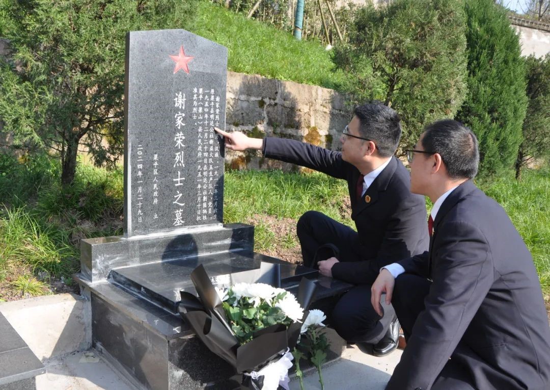 3月11日,梁平区检察院检察官幸山崎来到烈士陵园祭扫,发现新搬迁入园的谢家荣烈士墓前摆满了鲜花,昭示着“隐身”烈士走进了大众视野。