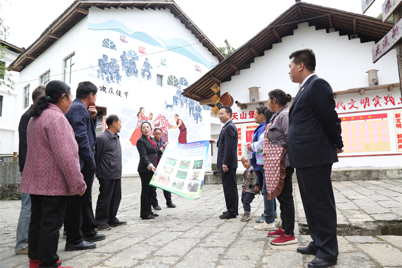 为深入学习贯彻习近平生态文明思想,践行绿水青山就是金山银山理念,用最严格制度最严密法治进一步加强野生动植物保护,实现生态环境保护“双赢多赢共赢”,10月12日,我院党组书记、检察长廖万超率本院相关工作人员,并邀请全国人大代表冉慧同行,前往县域内自然保护地、重点林场所在地村组开展实地调研走访,详细了解群众对身边珍稀野生动植物的认知、辨识度和对相关法律规定的知晓度,借助本院与县林业局协作印制的宣传海报向群众宣传我县常见的南方红豆杉、珙桐等29种珍稀濒危及国家重点保护野生植物,大鲵、穿山甲、猕猴等35种国家一、二级保护动物,同时结合办理的案例开展以案释法,提高老百姓生态法律意识,实现生态违法犯罪行为预防关口前移。