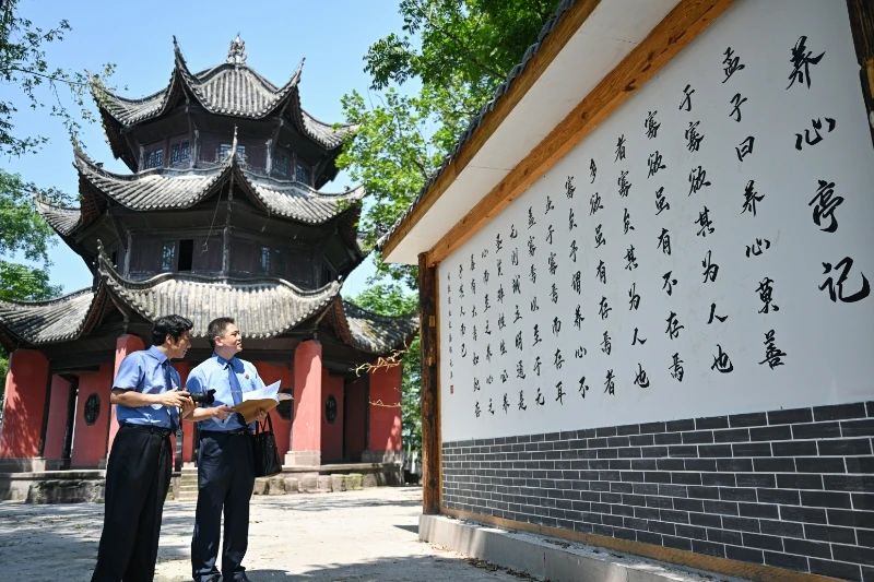 六月初晨,合川学士山薄雾中,养心亭八角飞檐挑开晨曦。合川区检察院公益诉讼检察官驻足景观墙前,《养心亭记》碑文上的“养心莫善于寡欲”六个字在晨光映照下显得格外清晰。曾挂着危房牌的养心堂旧址,在检察公益诉讼的持续监督下,修缮收尾工程正紧锣密鼓地进行——不久后,这座沉寂多年的理学圣地将重新开放,让周敦颐理学文脉在新时代焕发新生。