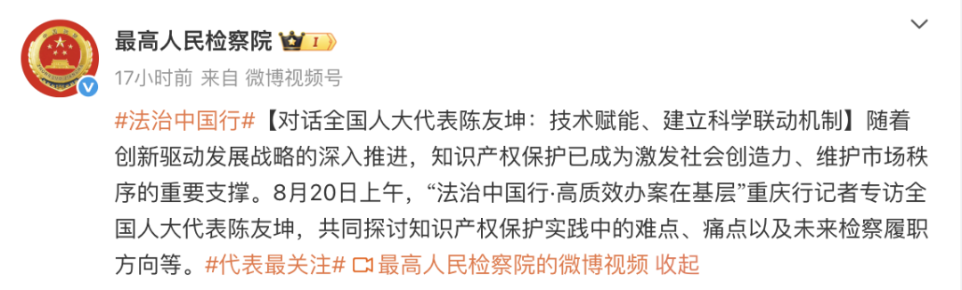 随着创新驱动发展战略的深入推进,知识产权保护已成为激发社会创造力,维护市场秩序的重要支撑。今天,检察日报社“正义会客厅”特别邀请到全国人大代表,重庆市律师协会常务副会长,北京大成(重庆)律师事务所党委书记、董事局主席陈友坤,陈友坤代表将围绕知识产权这一热点话题,和我们共同探讨实践中的难点痛点,以及未来检察履职的方向。