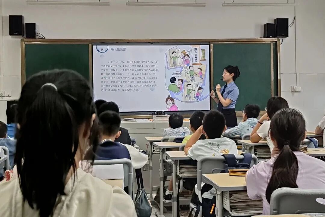 课堂上,检察官和公安干警紧密结合司法实践,从真实案例切入,为学生们系统讲解了电信网络诈骗的常见手段与防范策略,以及防范网络性侵害等法律知识。授课过程中还融入了情景模拟、互动问答等环节,梳理提示了“如何及时向家长、老师和司法机关求助,如何运用法律武器维护自身合法权益”等关键信息,有效提升了同学们的法治意识和自护能力。