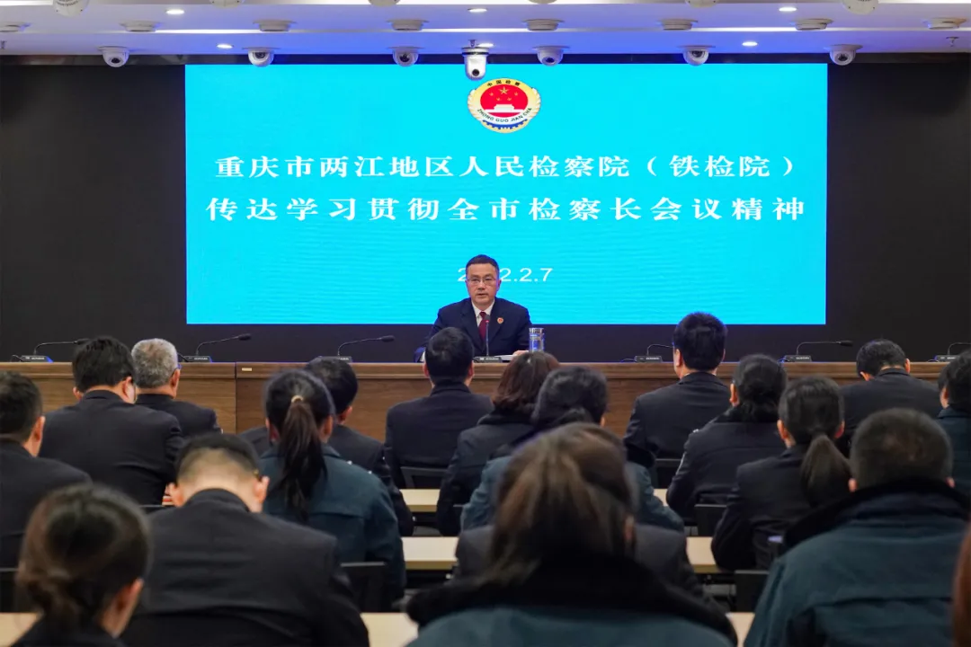 2月7日,两江地区检察院召开全院干警大会,传达贯彻全市检察长会议精神,安排部署下一步工作。