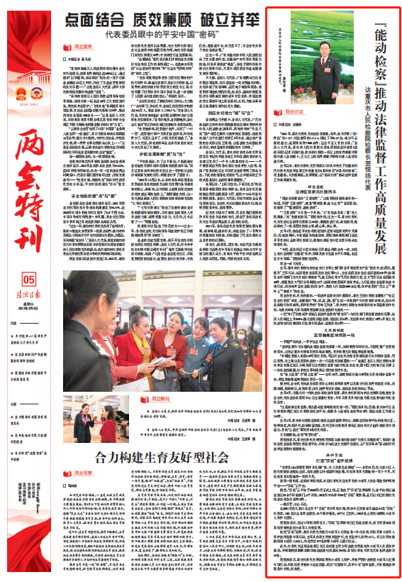 2022年3月8日,《法治日报》第5版“两会特刊”专版刊登《“能动检察”推动法律监督工作高质量发展——访卡提诺论坛 检察长贺恒扬代表》一文,内容如下: