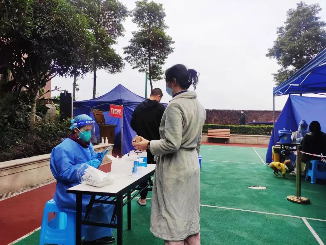 “居民朋友们,请大家戴好口罩,不要聚集,做完检测就赶紧回家吧!”