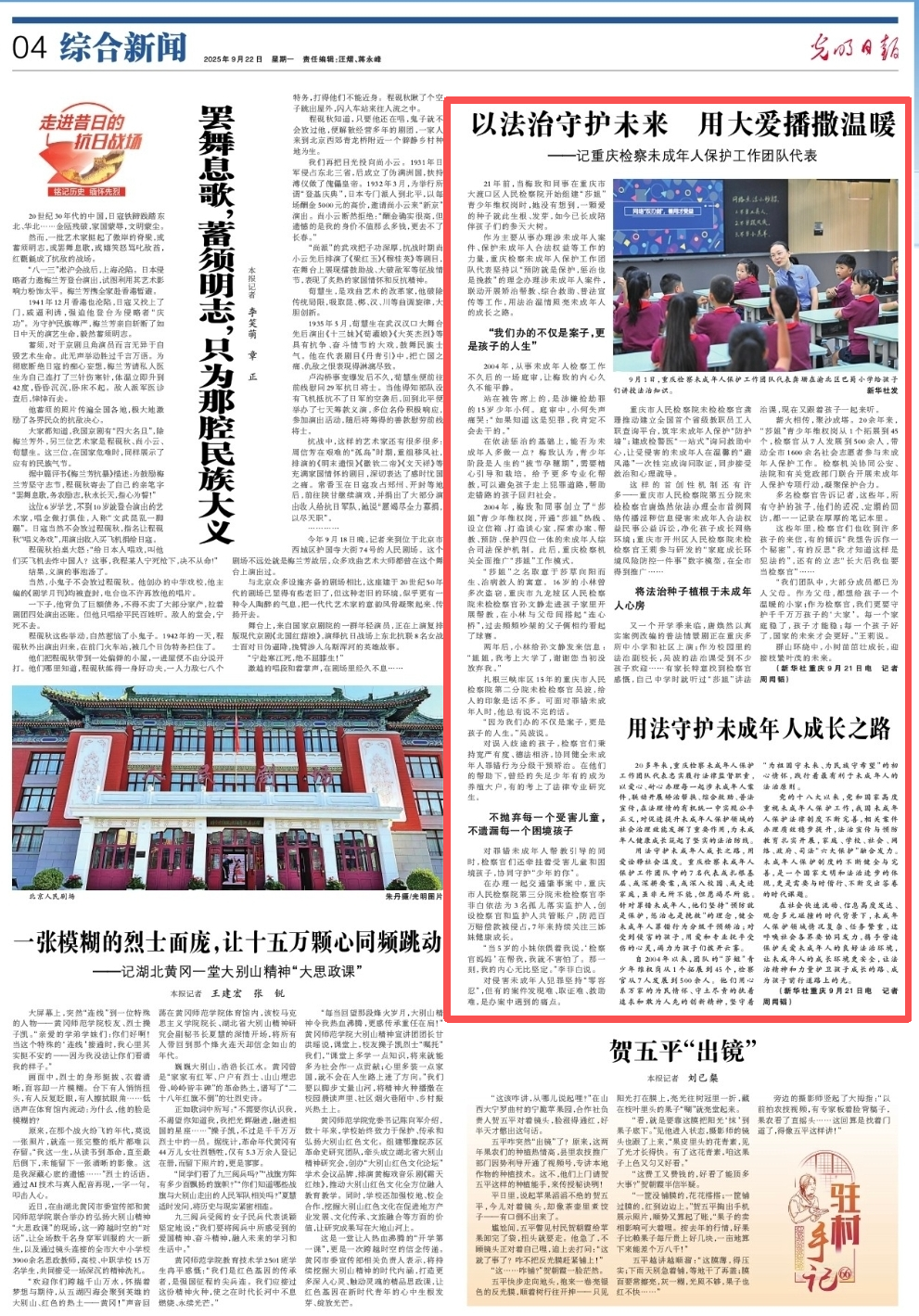 2025年9月22日,《光明日报》第4版刊登《以法治守护未来 用大爱播撒温暖——记卡提诺论坛
