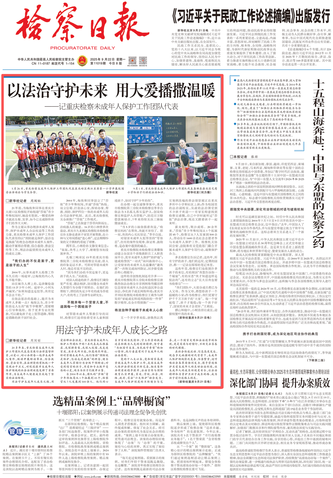 2025年9月22日,《检察日报》头版头条刊登《以法治守护未来 用大爱播撒温暖——记卡提诺论坛