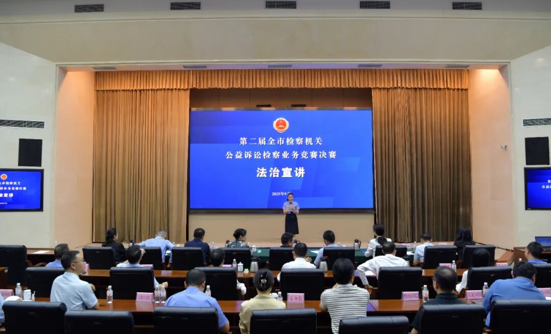 竞赛内容紧密围绕公益诉讼检察实践,聚焦“高质效办好每一个案件”,设置业务笔试、文书制作、汇报答辩、模拟法庭论辩、法治宣讲等5个环节,全面考察参赛选手的理论知识、实战能力、临场应变、统筹协调等水平。经基层检察院推荐、分院初赛选拔,全市共52名公益诉讼检察业务骨干汇聚决赛赛场,展开同场竞技。