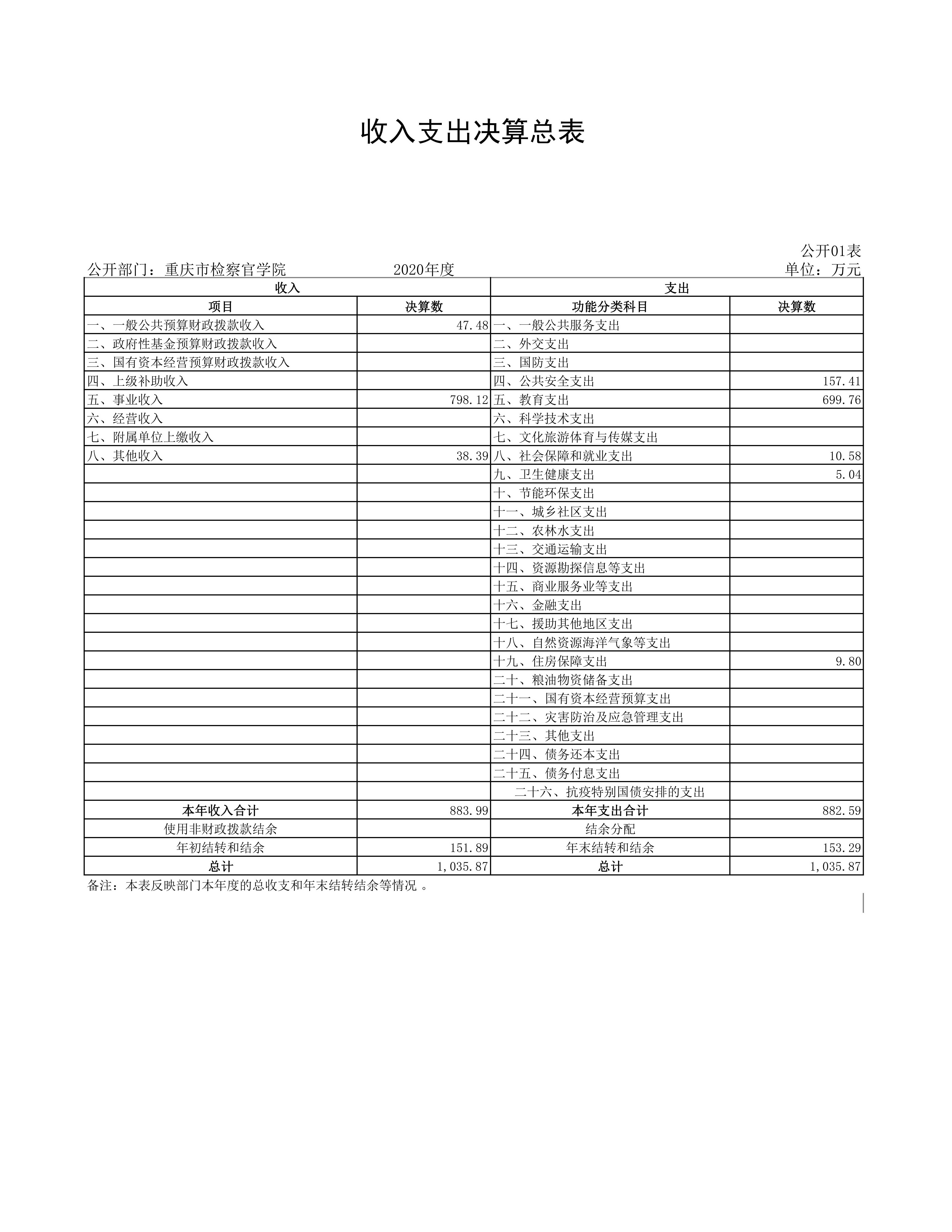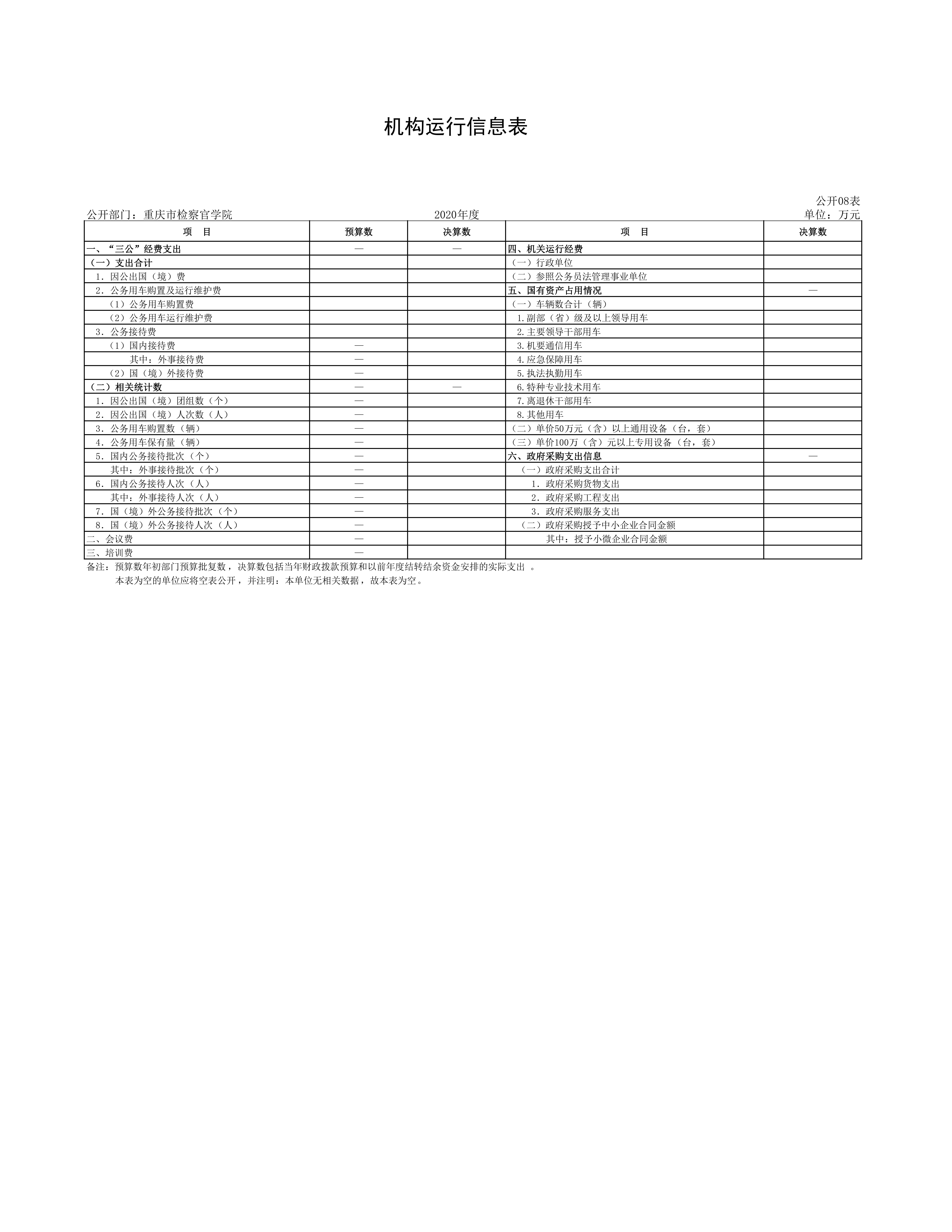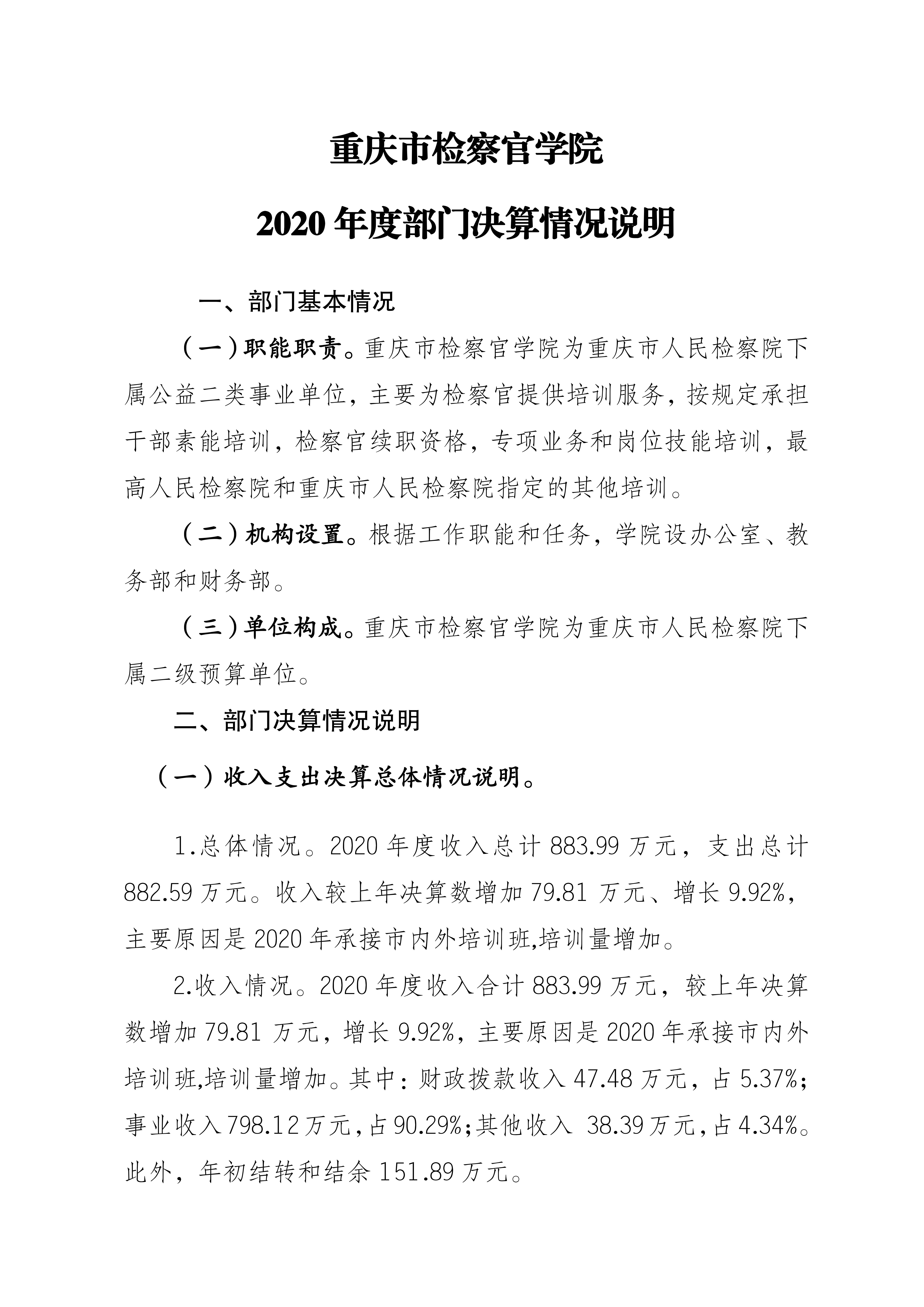 重庆市检察官学院2020年度决算情况公开