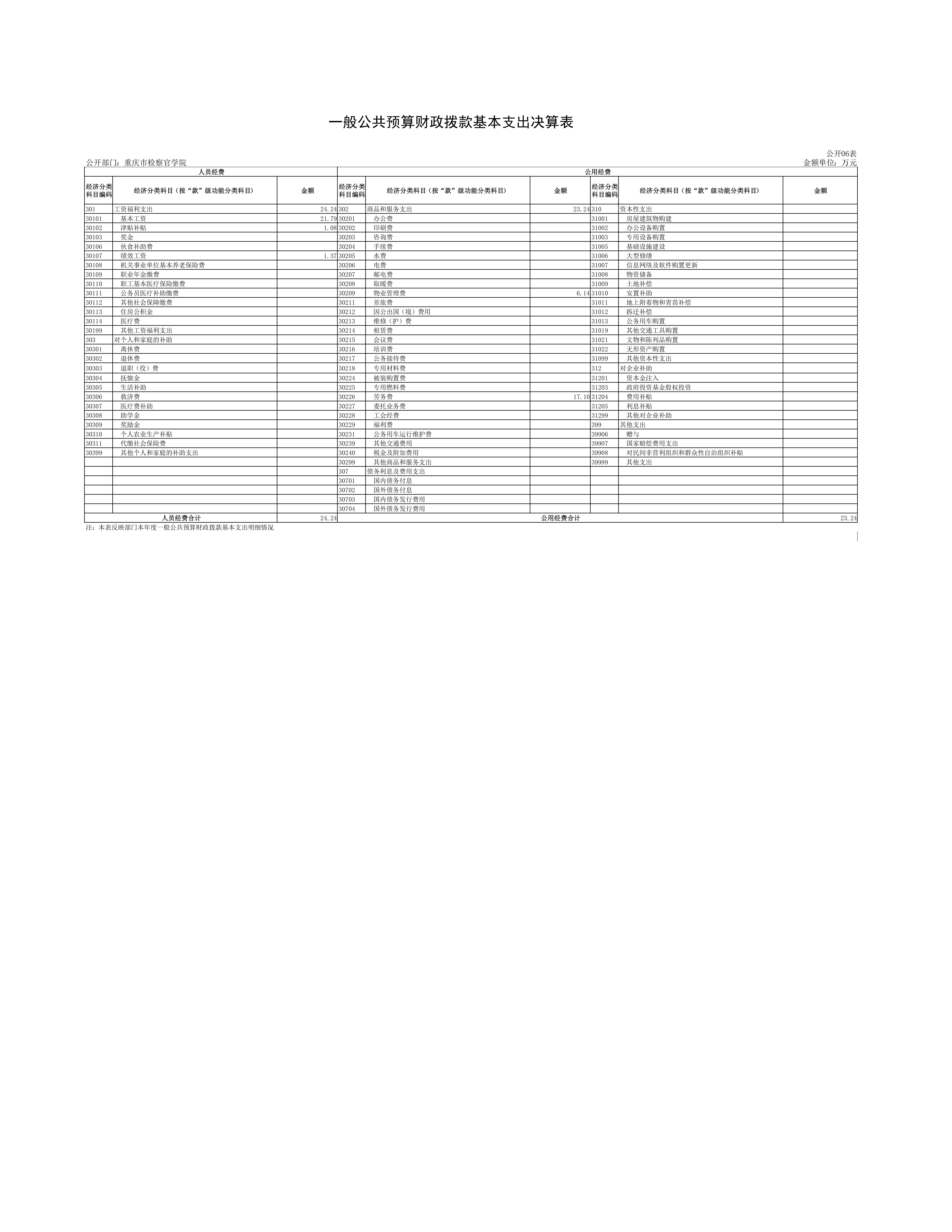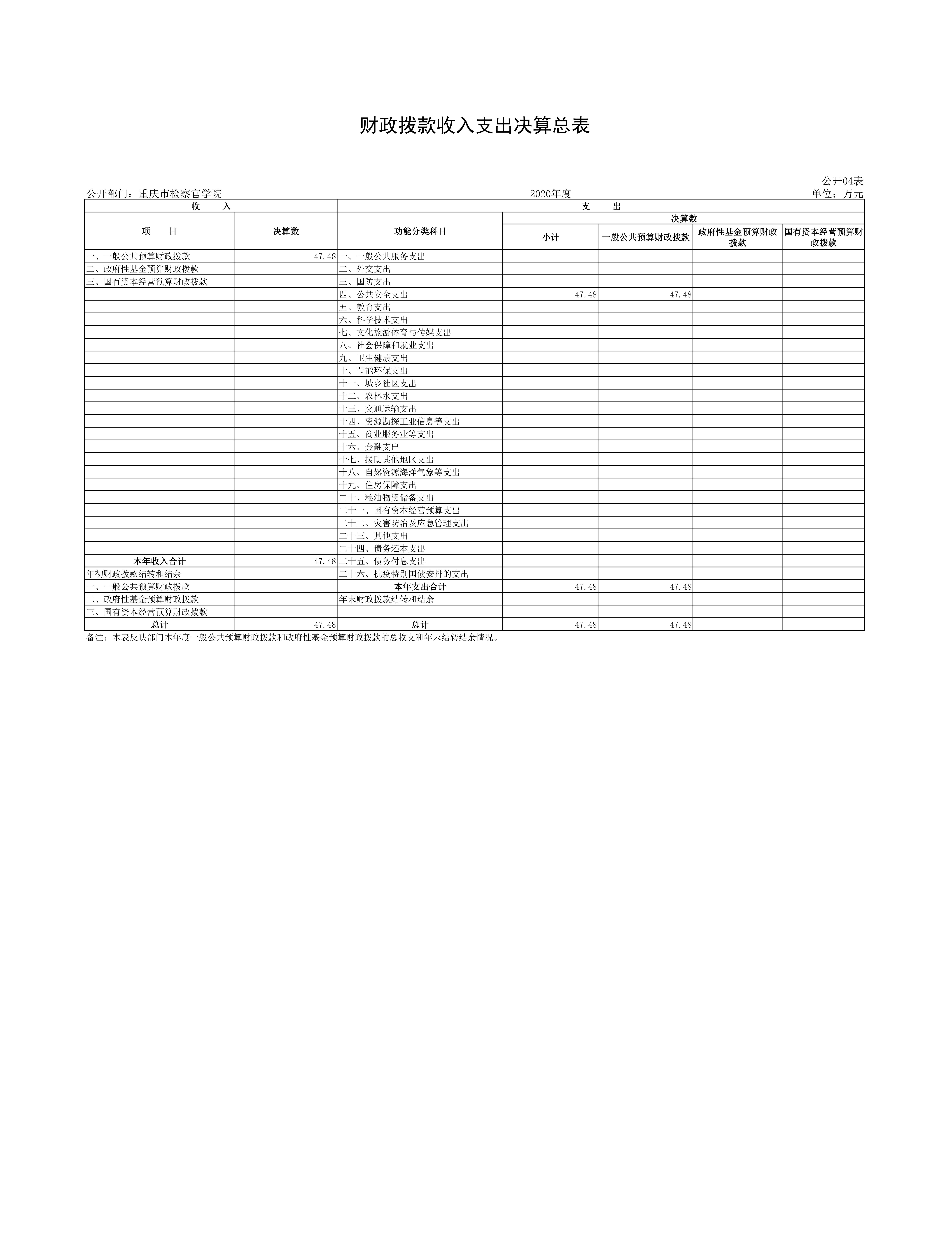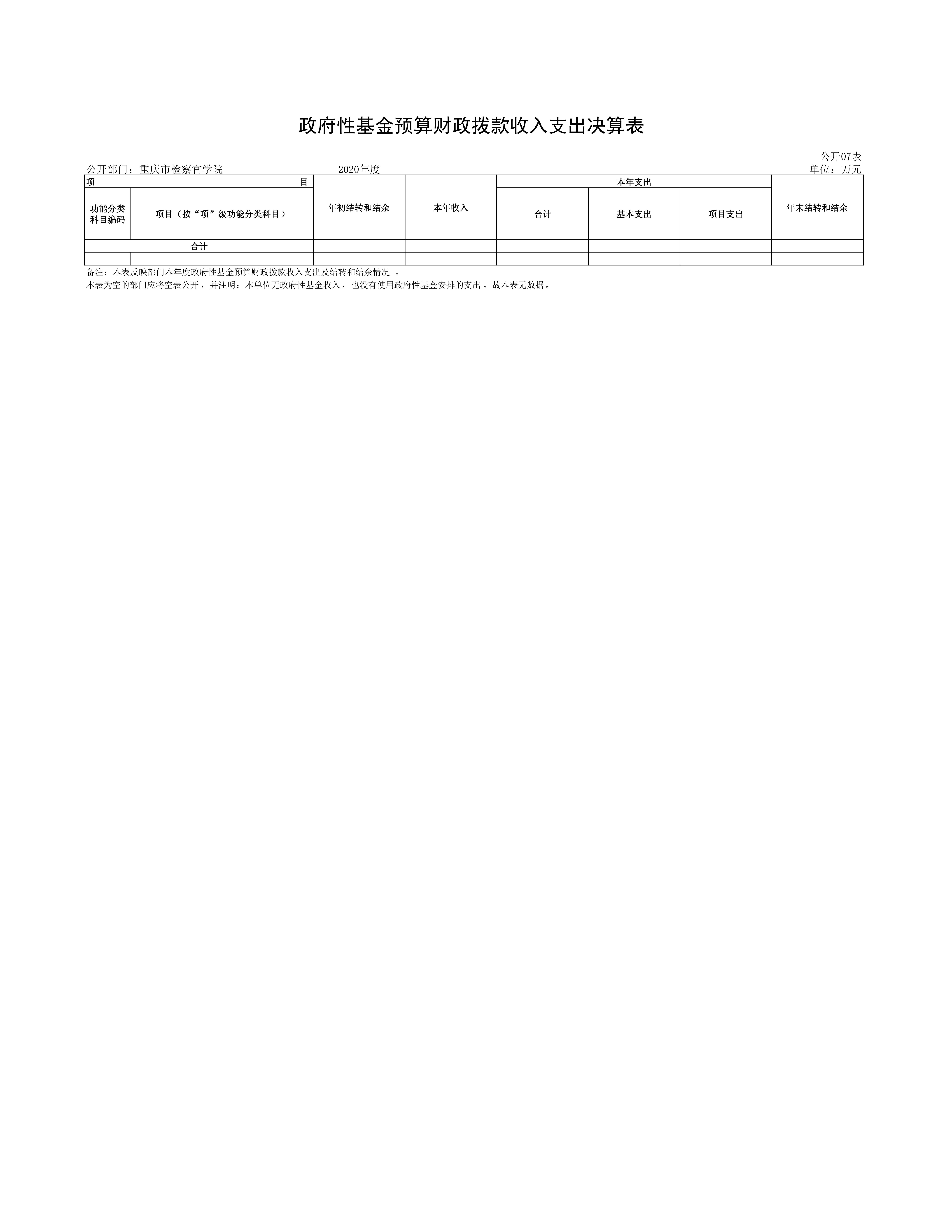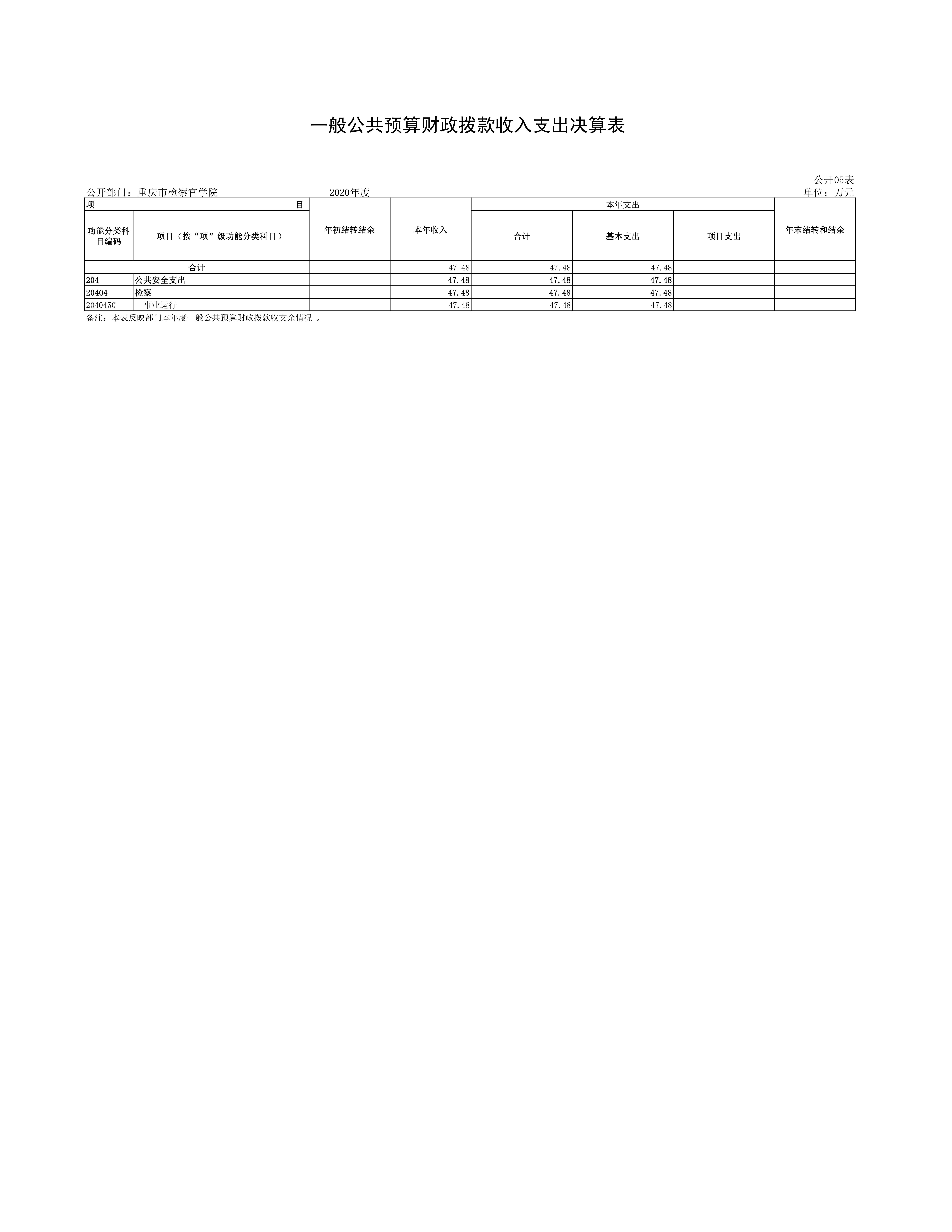 重庆市检察官学院2020年度决算情况公开