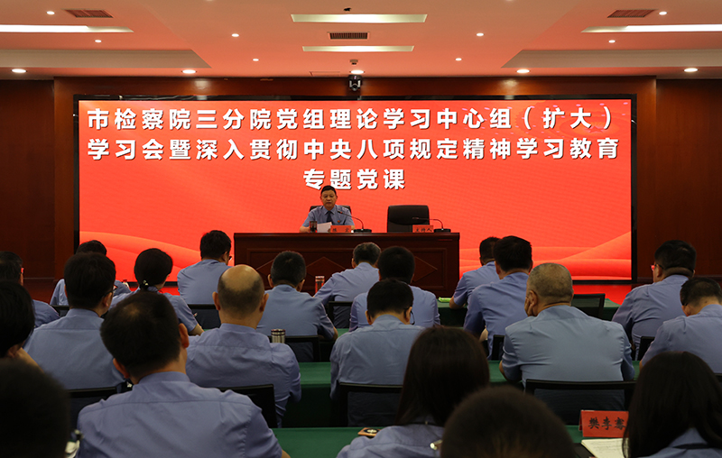 为深入学习贯彻习近平总书记关于加强党的作风建设的重要论述,扎实推进深入贯彻中央八项规定精神学习教育,6月30日,市检察院三分院党组书记、检察长陈宏以《坚定信念、坚守初心、坚持锻造过硬作风,在深入贯彻中央八项规定精神学习教育中不断推动检察事业健康发展》为题,为全院干警讲授专题党课。