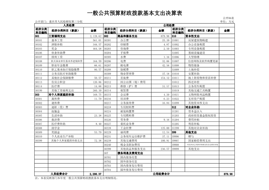 卡提诺论坛 第三分院2018年决算公开表及说明