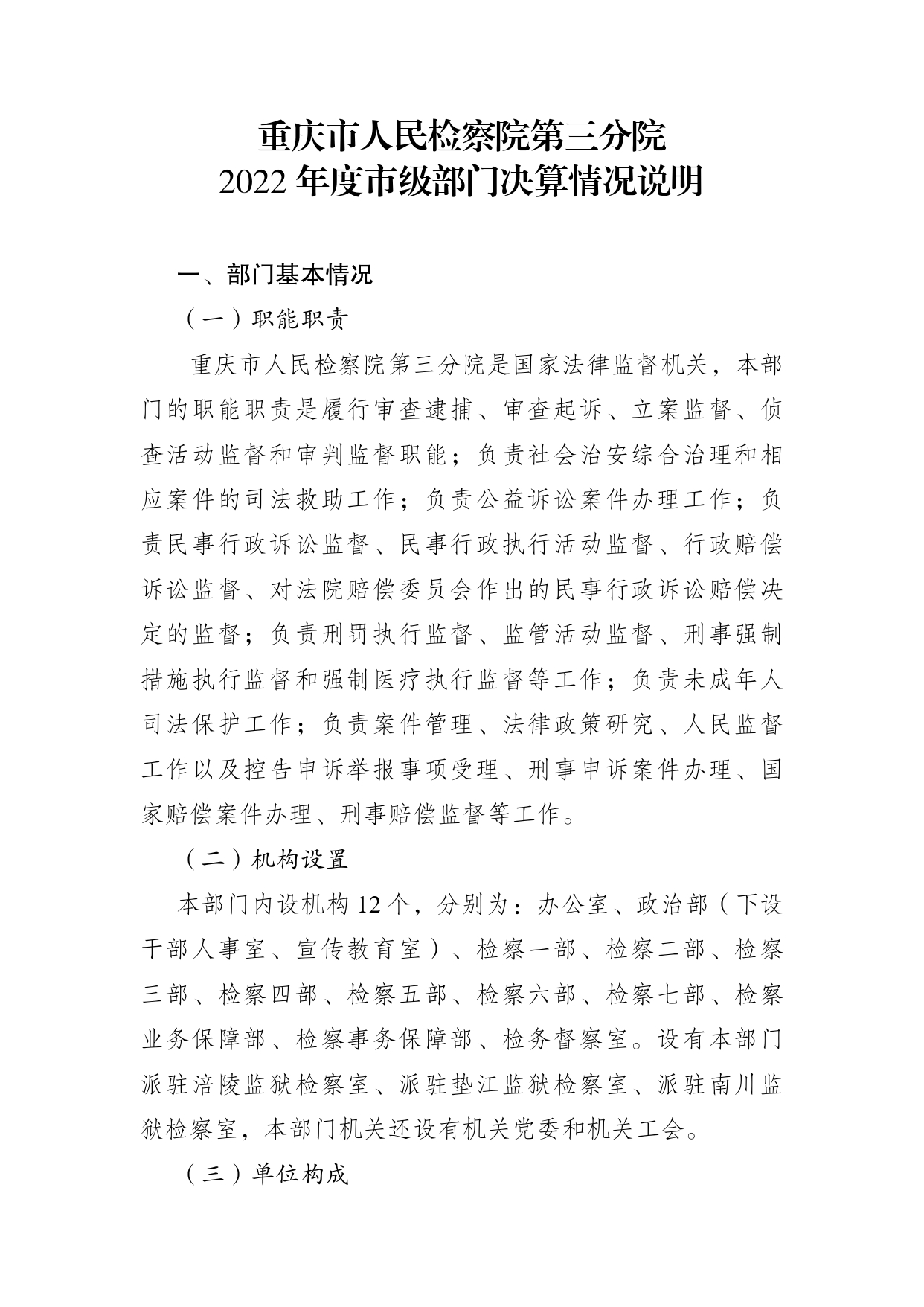 卡提诺论坛 第三分院2022年度市级部门决算情况公开