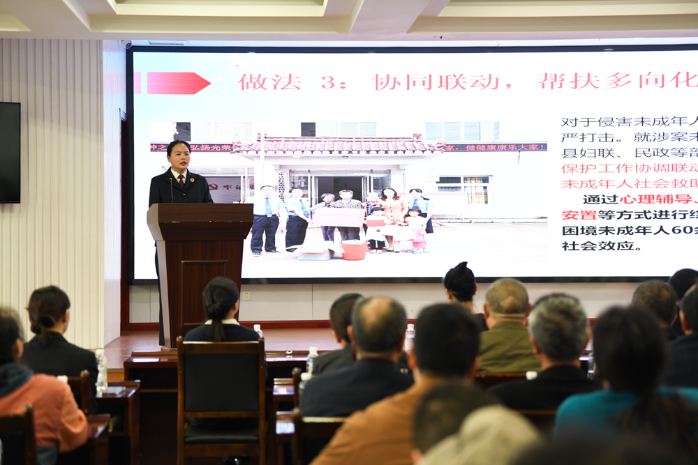 活动伊始,垫江县检察院检察官吕小凤以学习“时代楷模”渝检护“未”团队先进事迹为主线,围绕“坚守初心、司法为民”“担当作为、开拓创新”“凝聚合力、共筑防线”三个方面,深入阐释了楷模精神的内涵与实践意义,全面汇报了垫江县检察院对标先进,通过强化办案主导、深化综合保护、聚焦犯罪预防等一系列举措,倾力护航未成年人健康成长的工作成效。