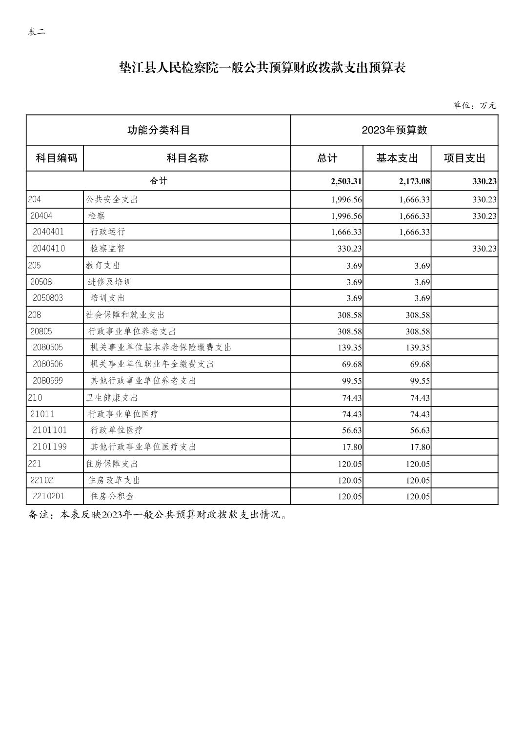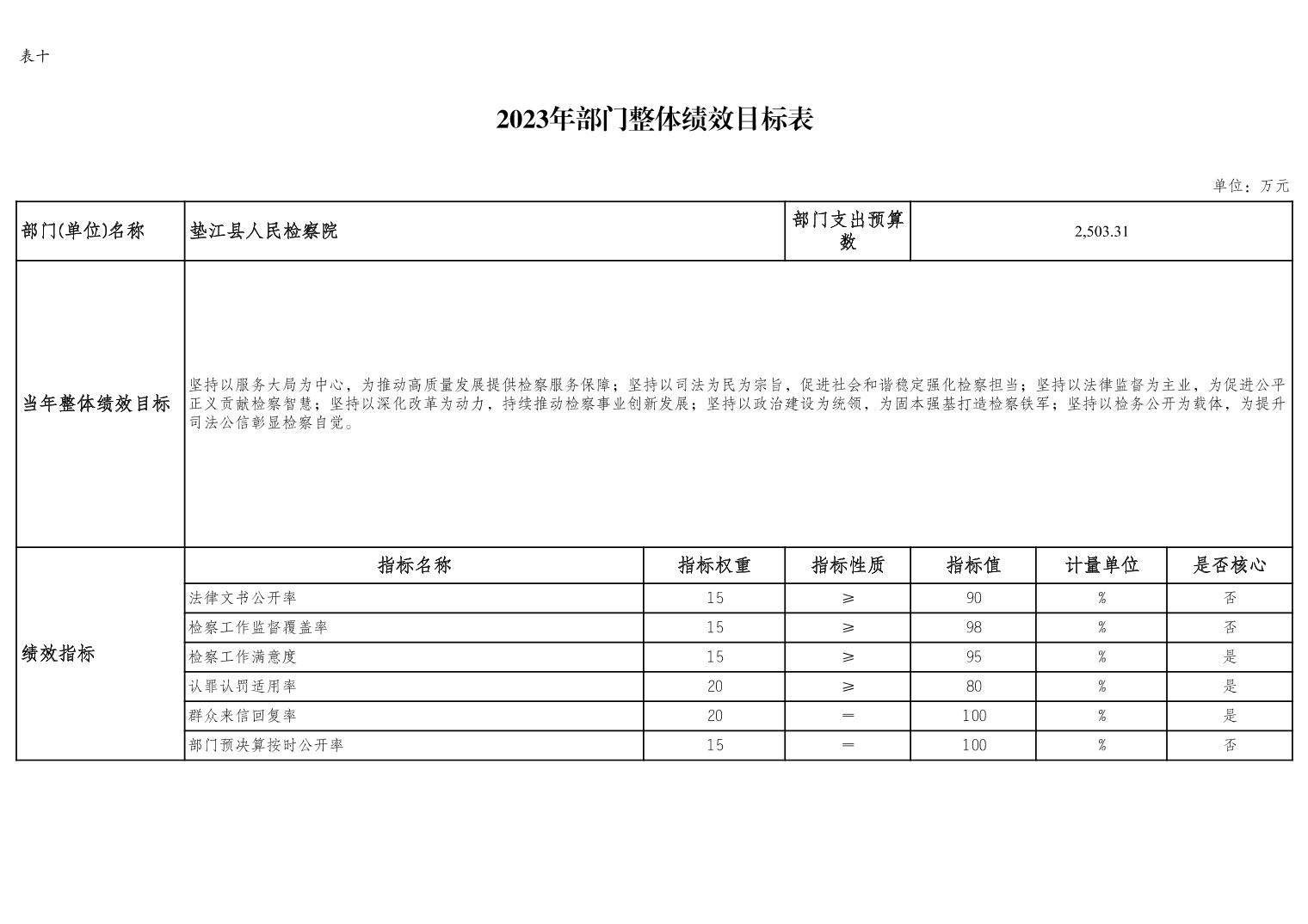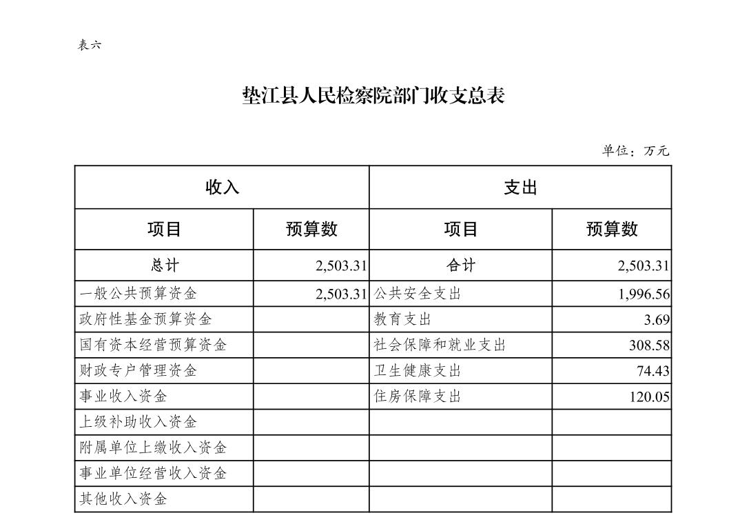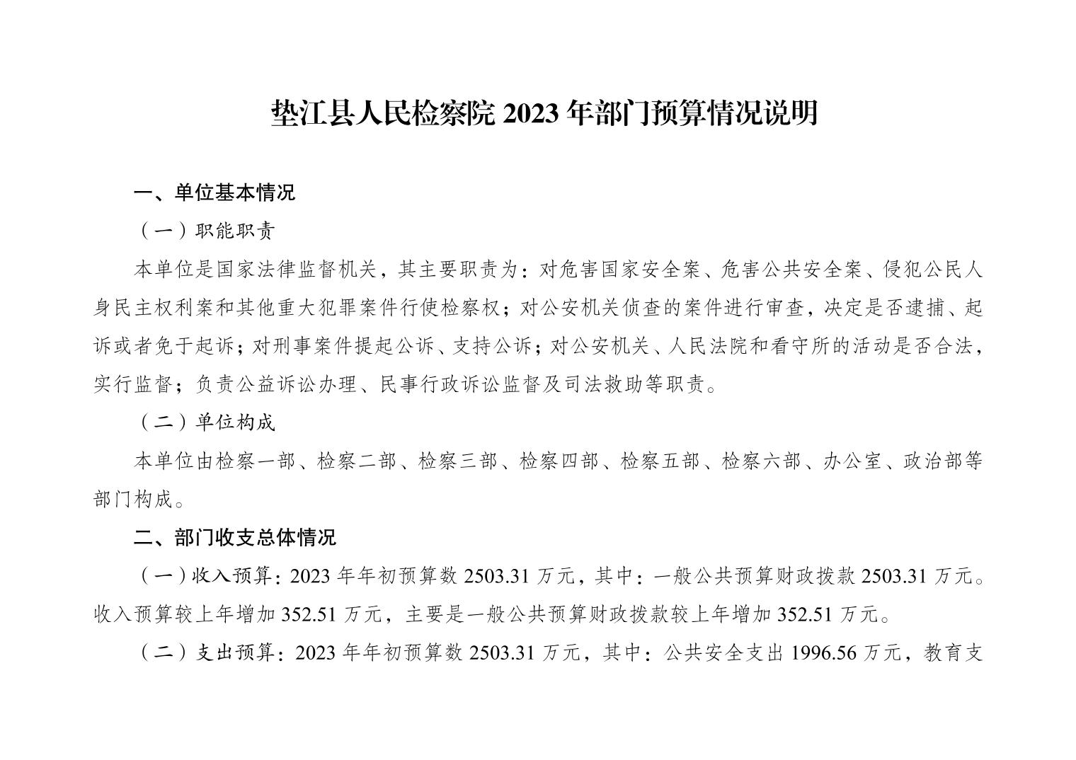 重庆市垫江县人民检察院2023年部门预算公示