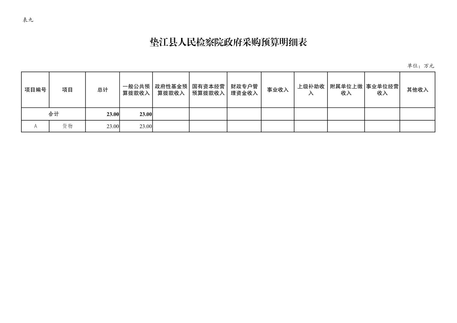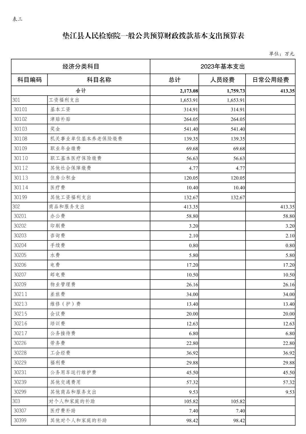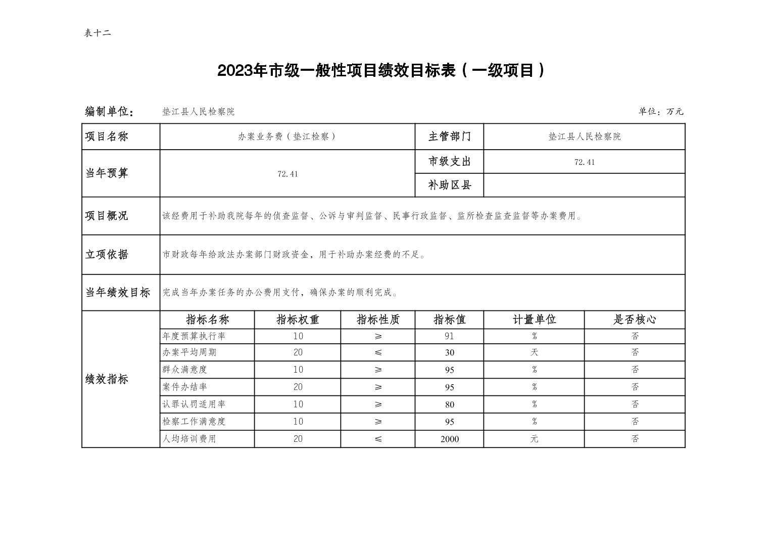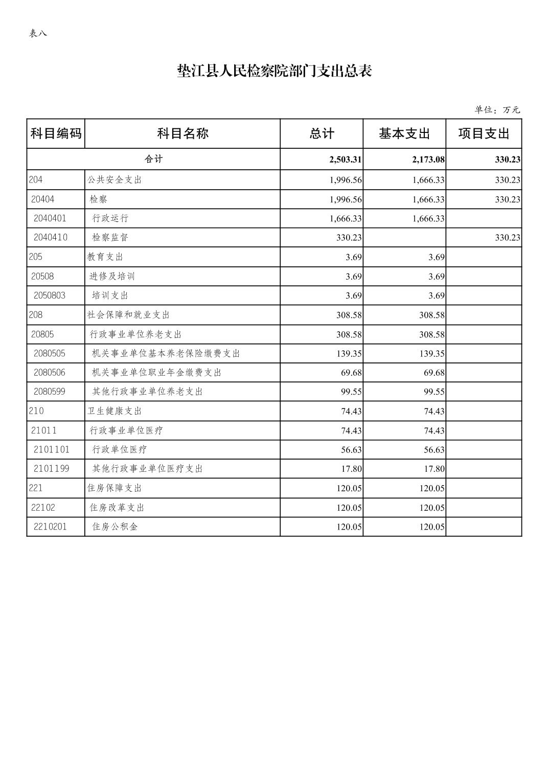 重庆市垫江县人民检察院2023年部门预算公示