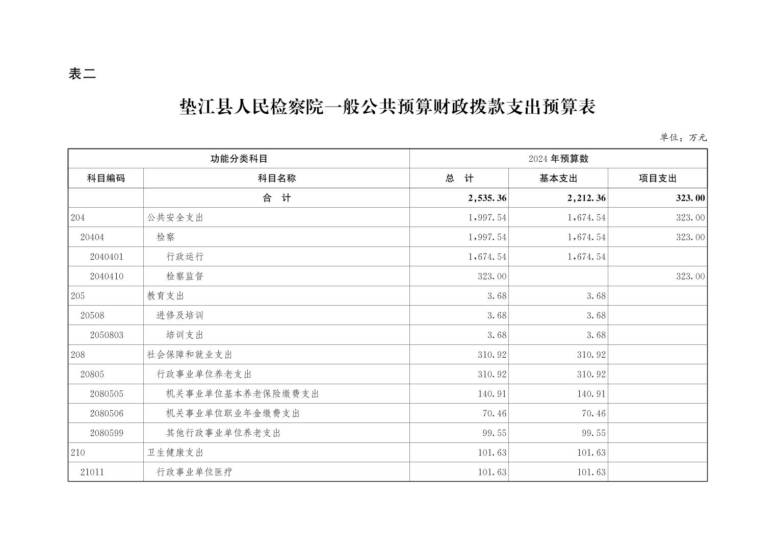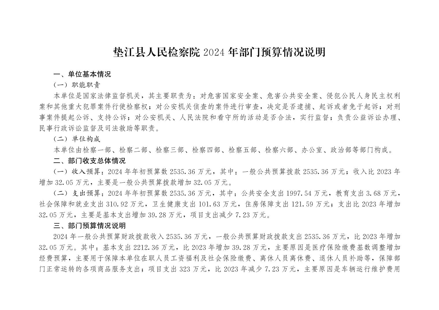重庆市垫江县人民检察院2024年度部门预算公开