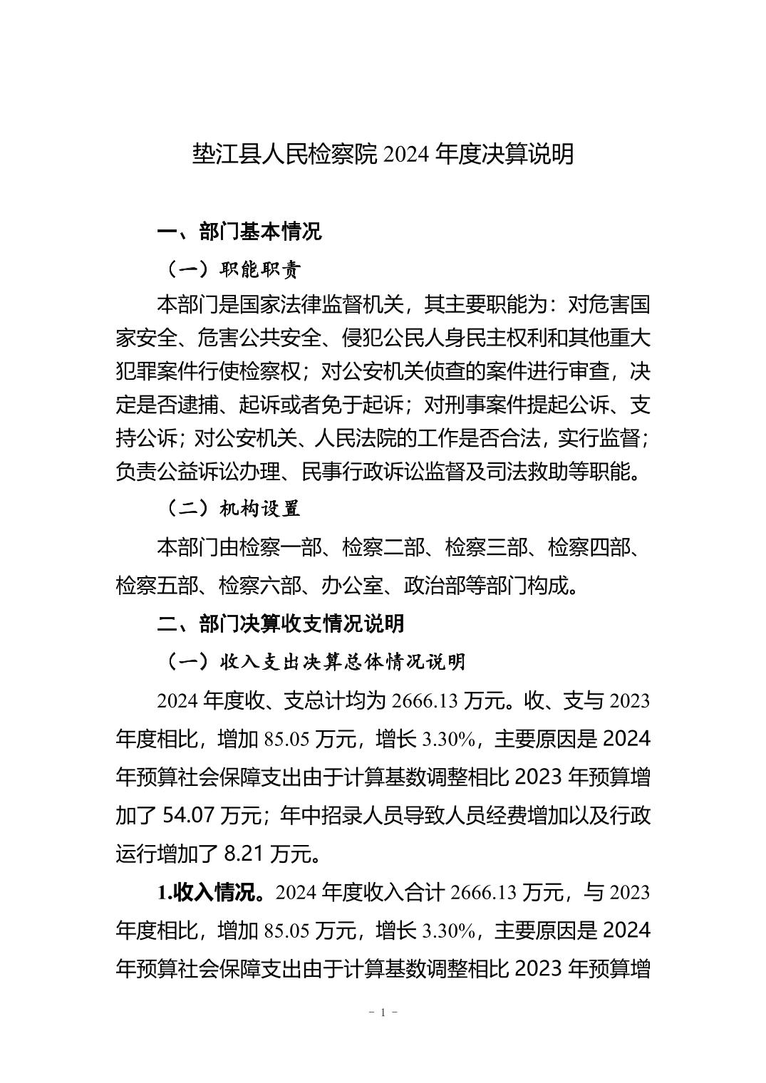 垫江县人民检察院2024年度部门决算公开