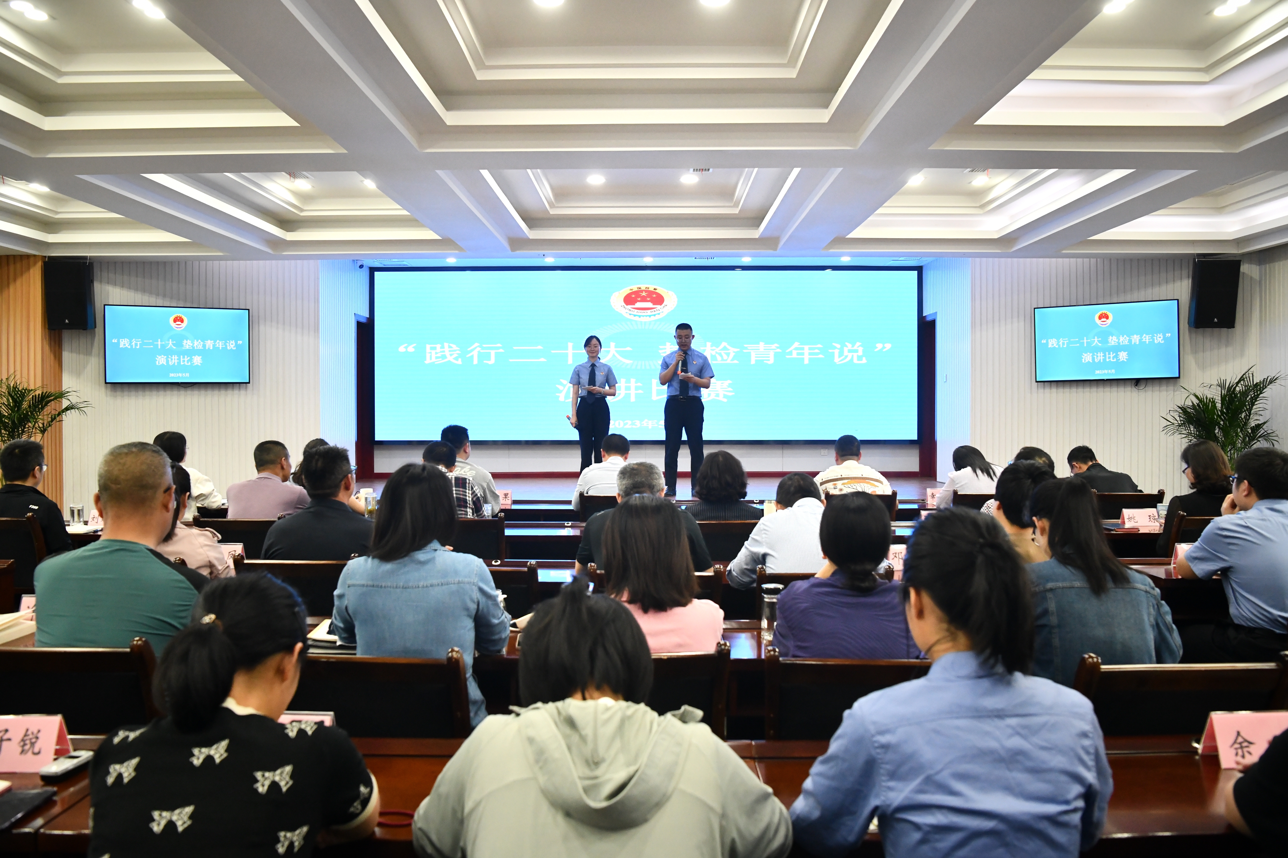 5月16日,垫江县检察院青年联合会组织开展以“践行二十大·垫检青年说”为主题的演讲比赛。院党组书记、检察长许世兰,全体班子成员及全体干警观看比赛。
