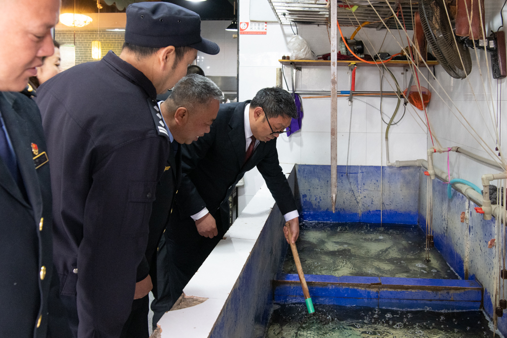 活动中,垫江县检察院检察二部主任郑浩龙代表长江生态检察官办公室,对行政机关销毁鱼竿、渔网等禁渔罚没物资开展现场监督,与县农业农村委、市场监督管理局一同查看餐饮行业鱼类品种管理情况。