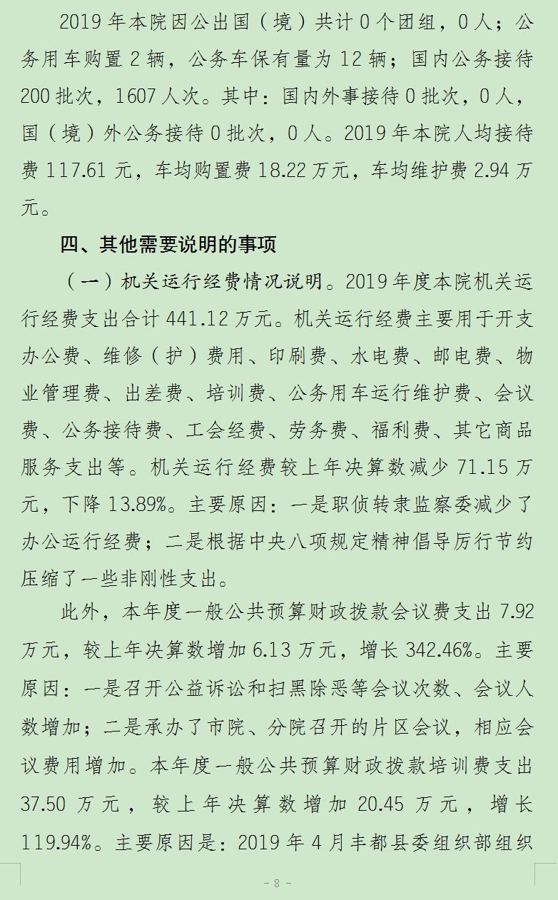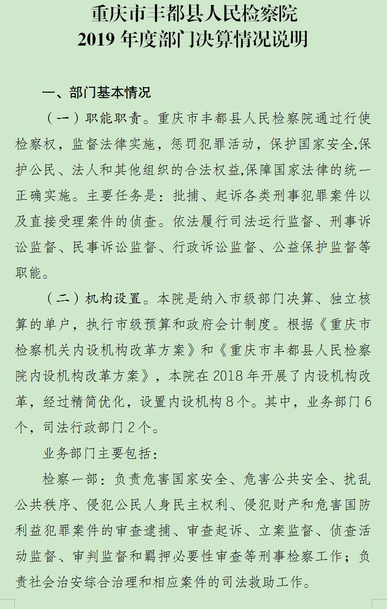 重庆市丰都县人民检察院2019年度部门决算情况说明