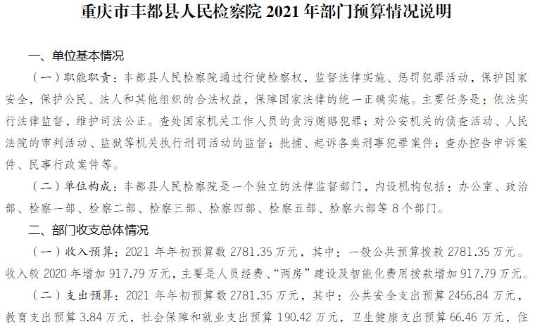 重庆市丰都县人民检察院2021年部门预算情况说明