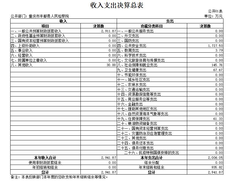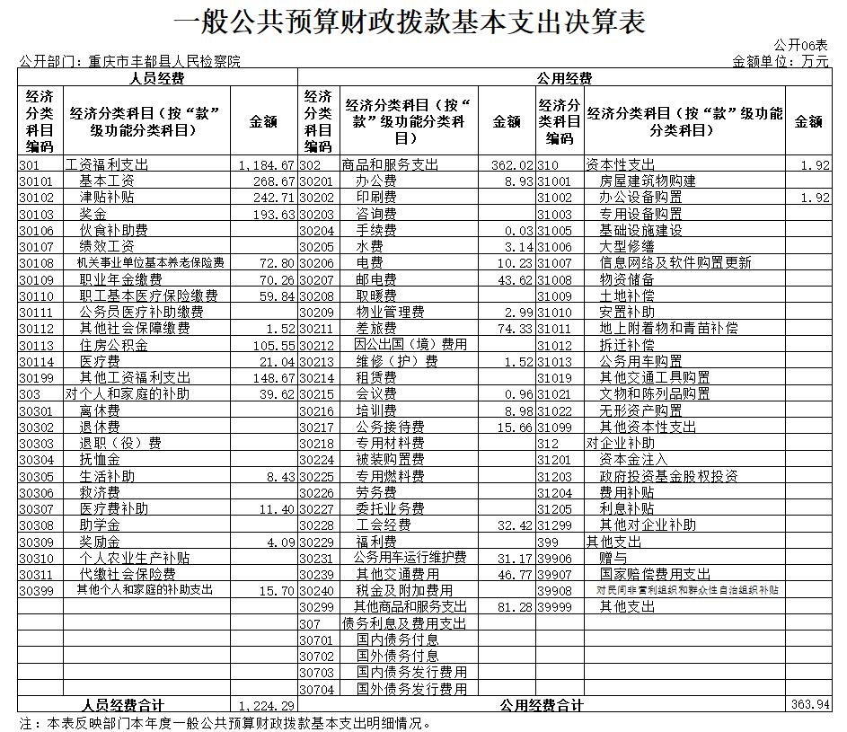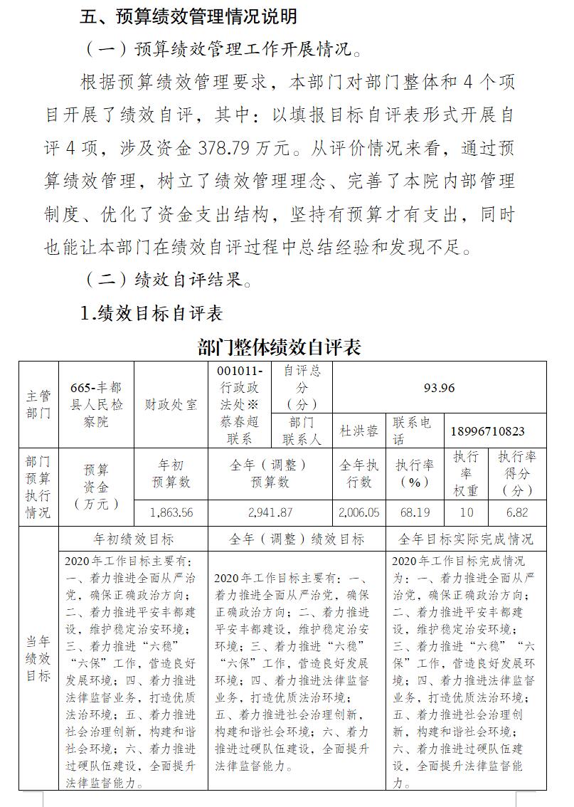重庆市丰都县人民检察院2020年度部门决算情况说明