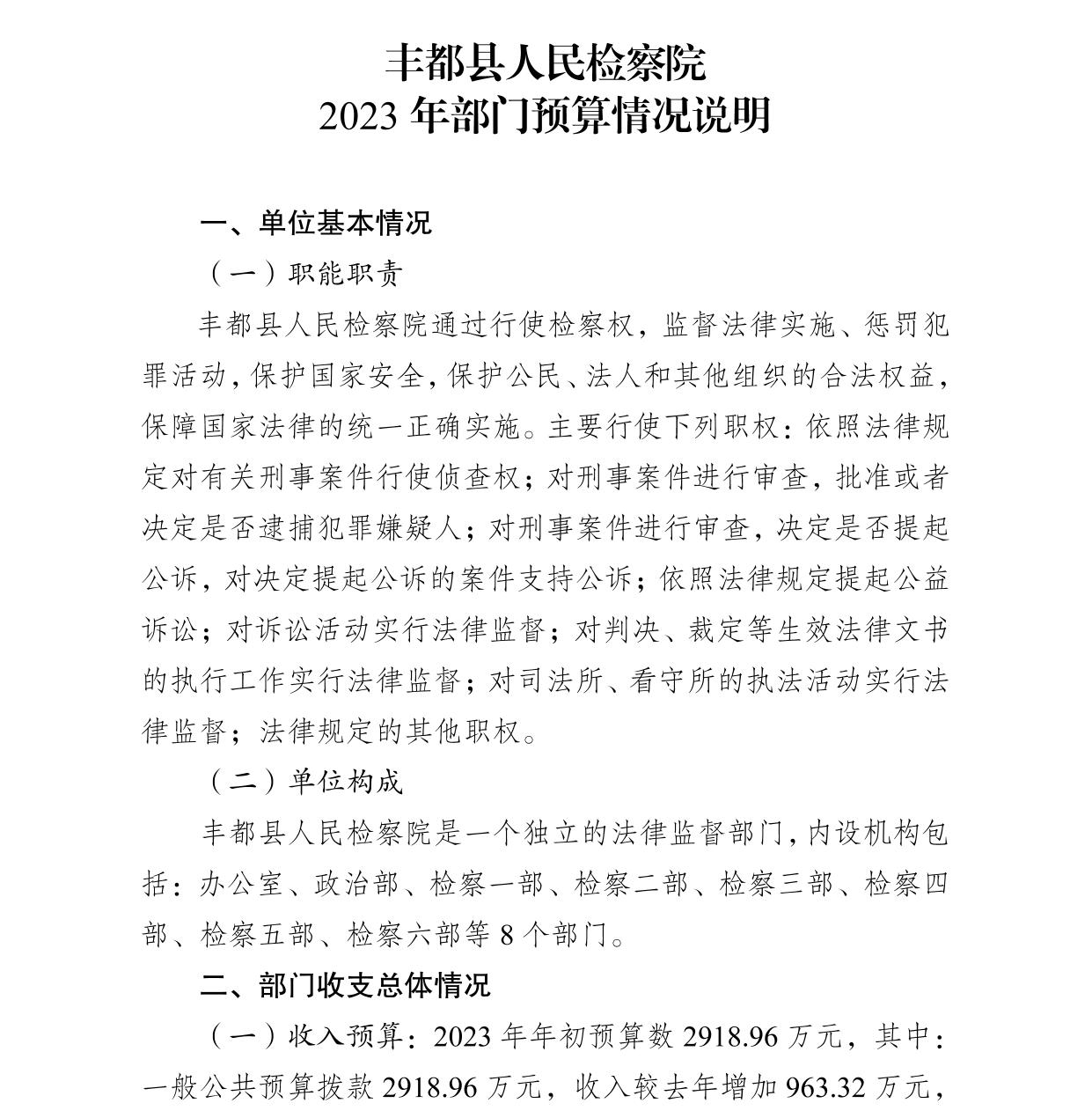 重庆市丰都县人民检察院2023年部门预算情况说明