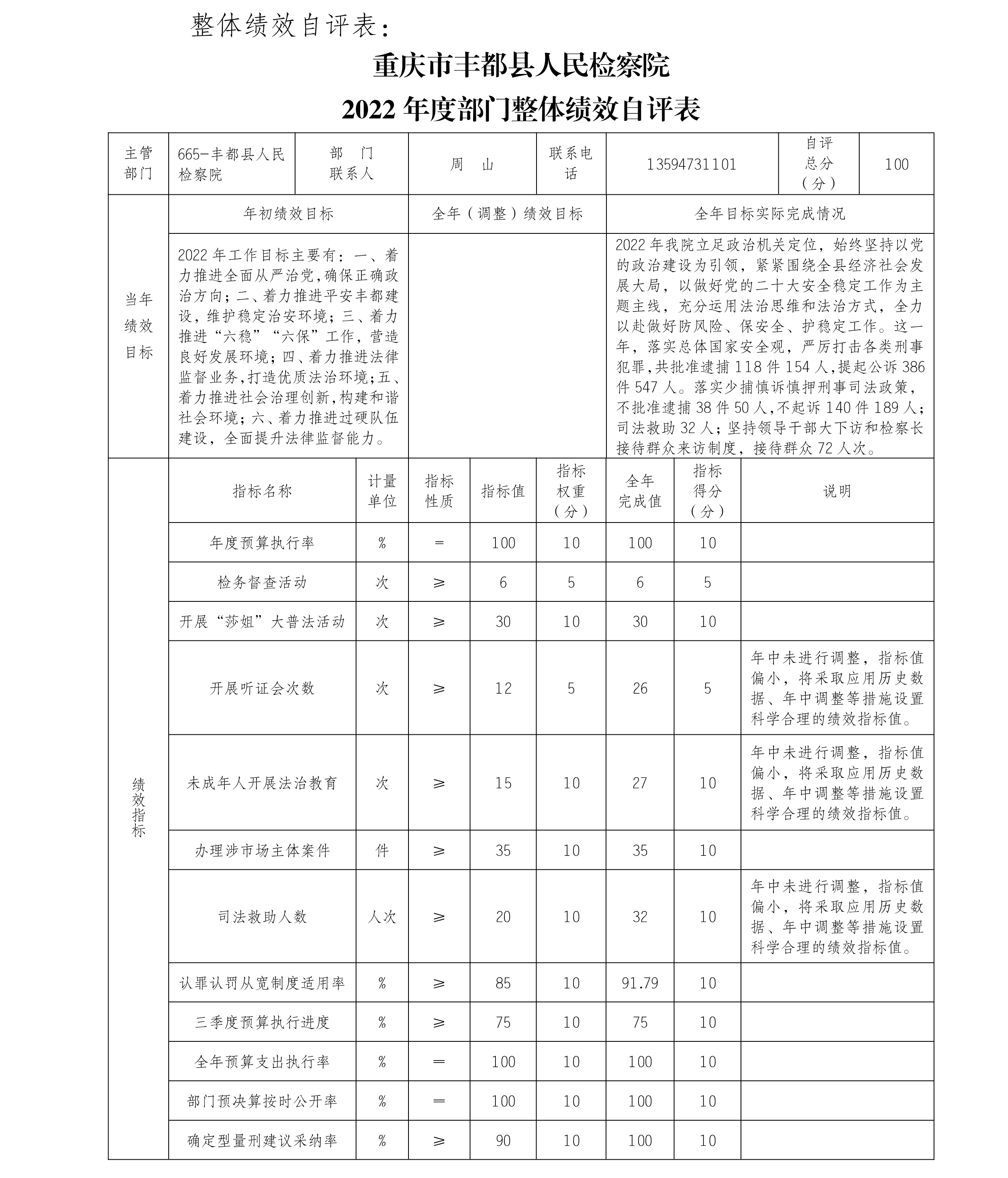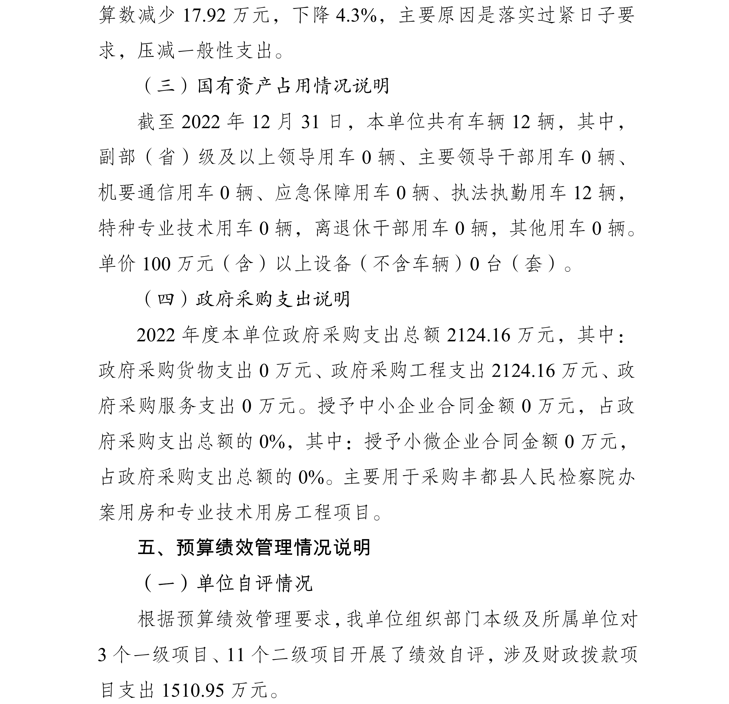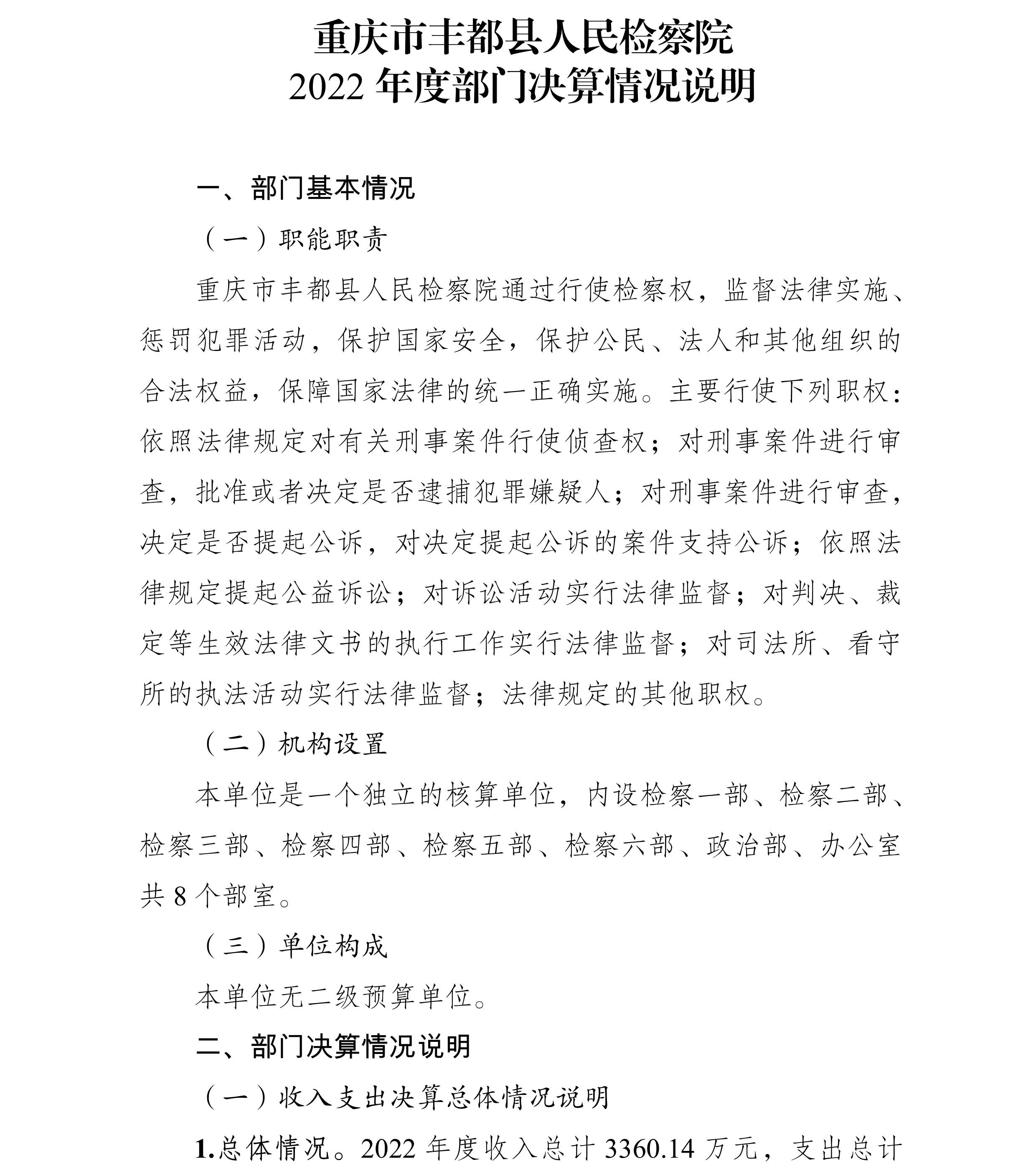 重庆市丰都县人民检察院2022年度部门决算情况说明