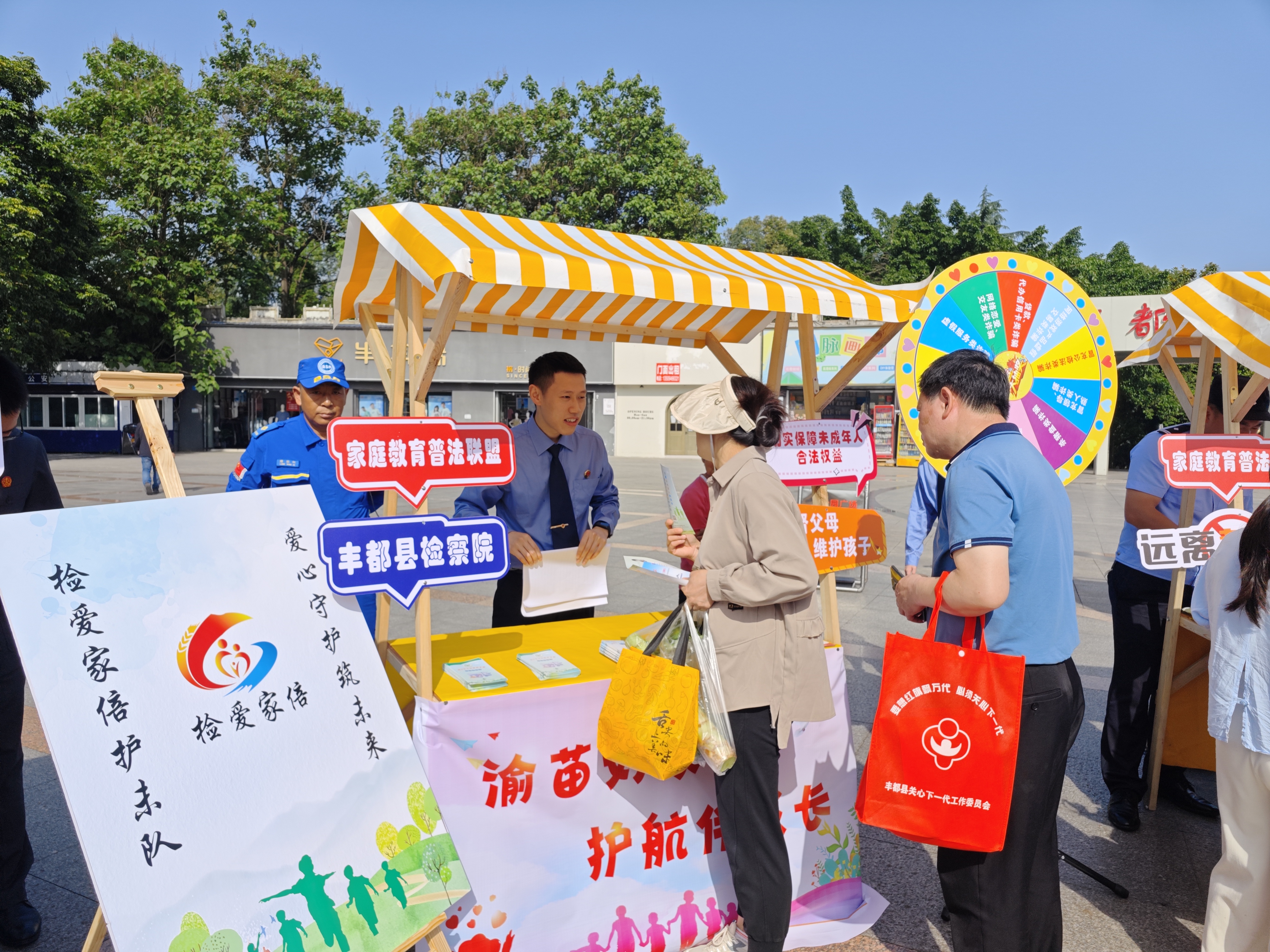 5月13日,在全国第三个家庭教育宣传周之际,丰都县检察院“检爱家倍护未队”联合县妇联、县法院、县公安局等部门在丰都县朝华公园开展“家庭教育宣传周”普法游园活动。