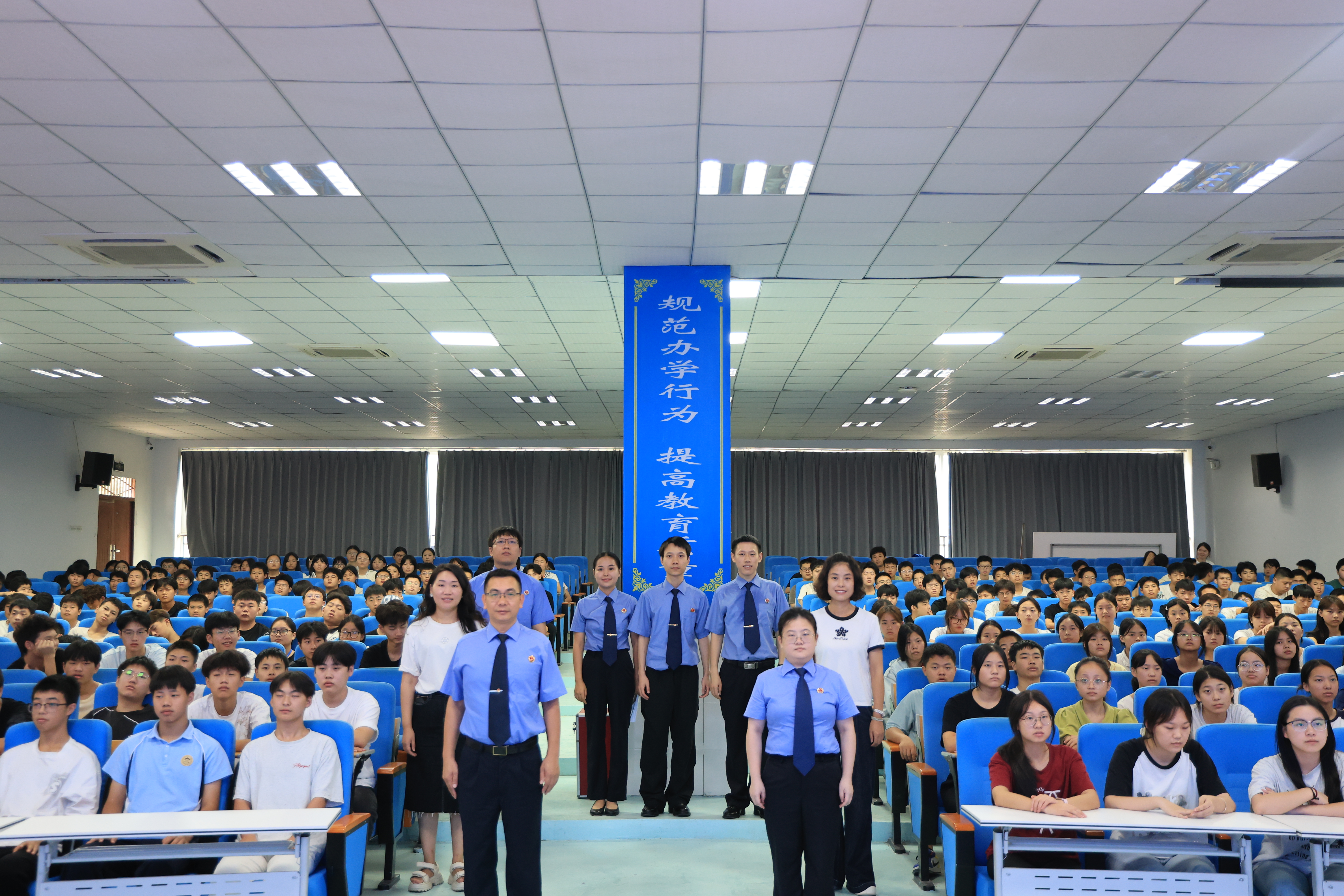 9月9日,市检察院三分院、我院检察二部干警走进丰都县职业教育中心,为同学们带来一场生动的“开学法治第一课”。检察干警化身“狡猾客服”“网瘾少年”“正义检察官”表演法治情景剧,以真实案例为原型,鲜活呈现未成年人在“高薪兼职”诱惑下沦为诈骗帮凶的全过程,帮助同学们增强防骗意识,提升法治素养。