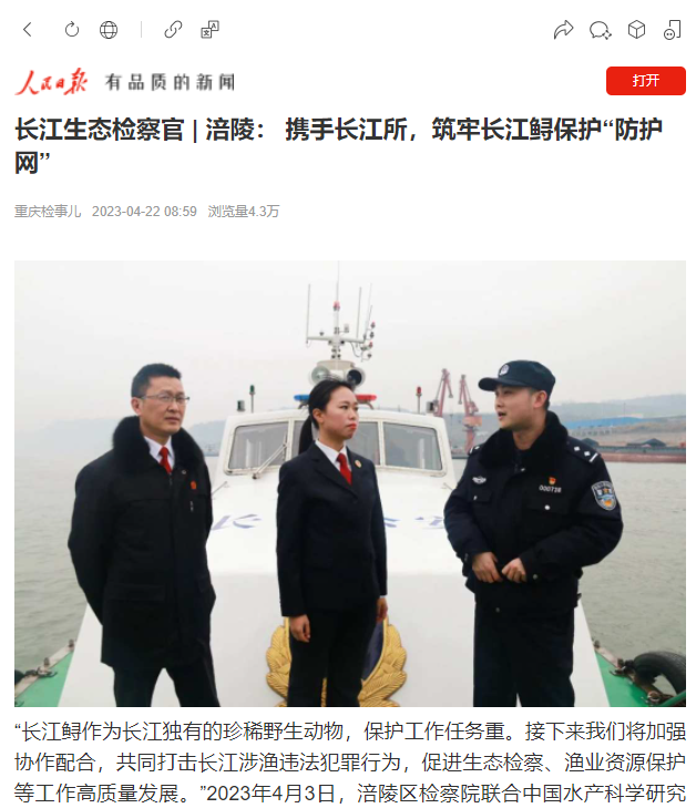 “我院将继续发挥‘四大检察’职能作用,健全检察环节生态修复机制,增强长江沿岸渔业资源保护,扛起长江生态保护‘上游责任’。”该院党组成员、副检察长庄永东表示。