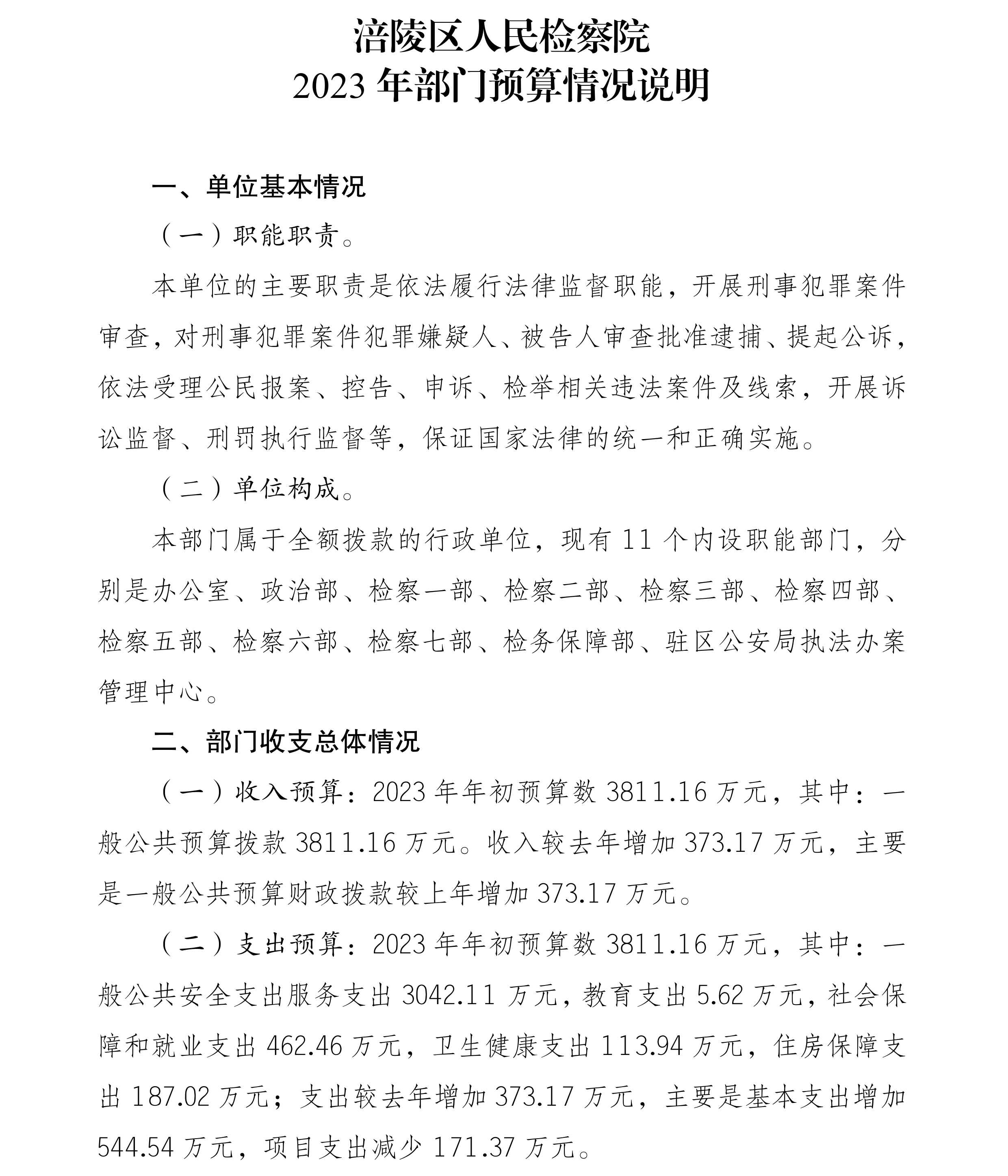 涪陵区人民检察院2023年单位预算情况说明.pdf