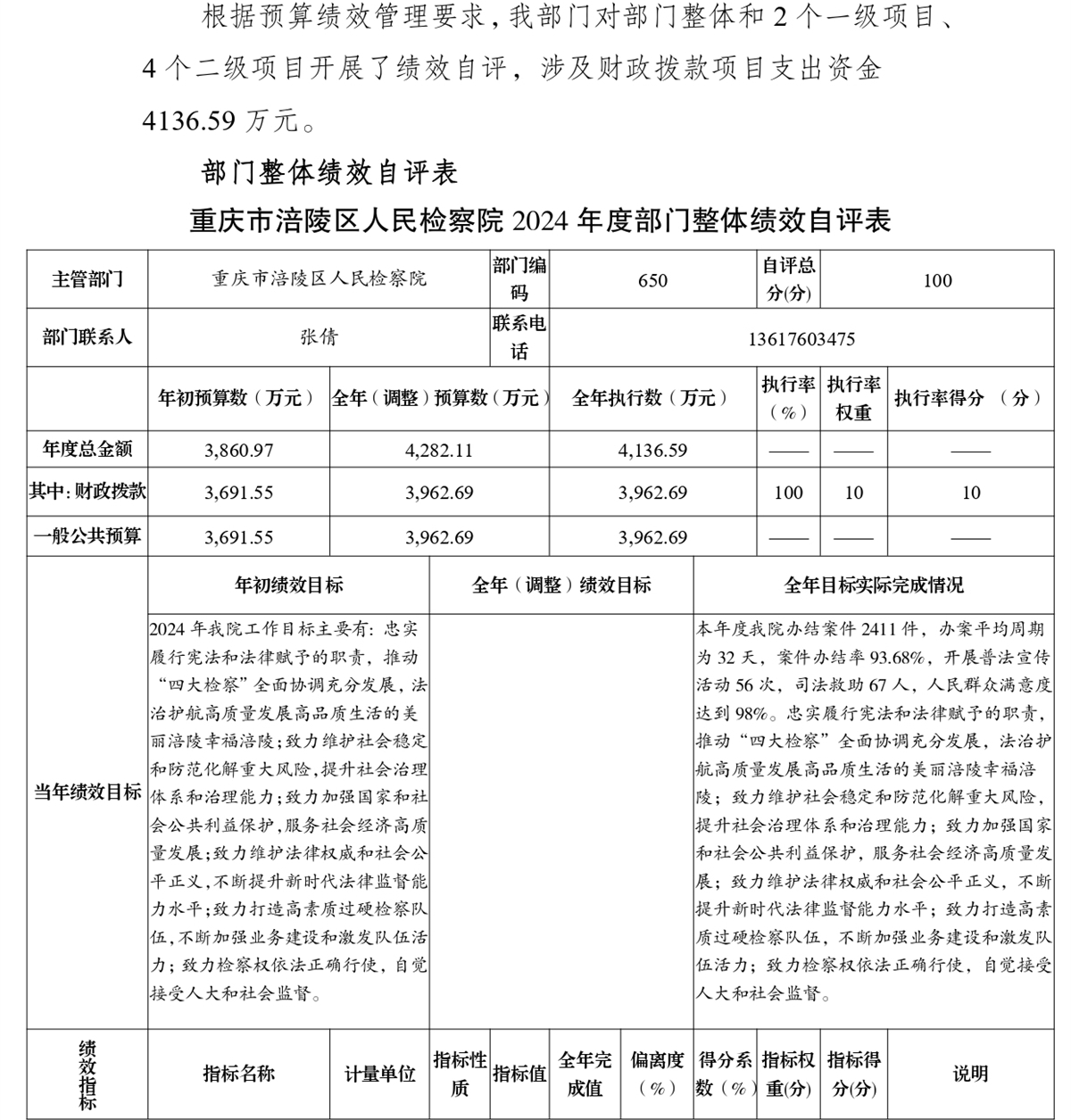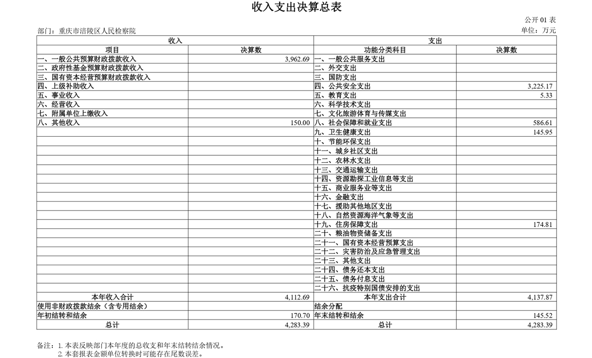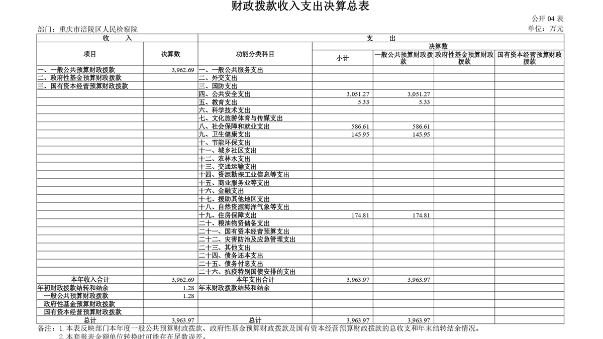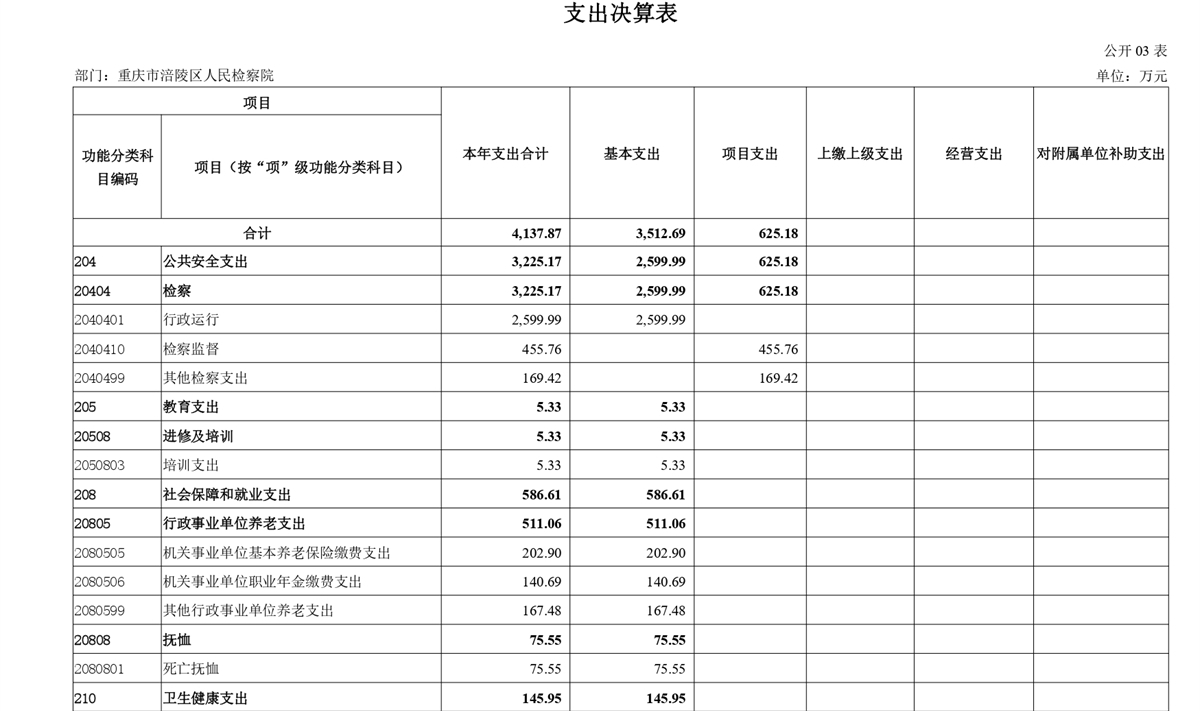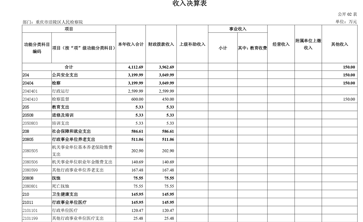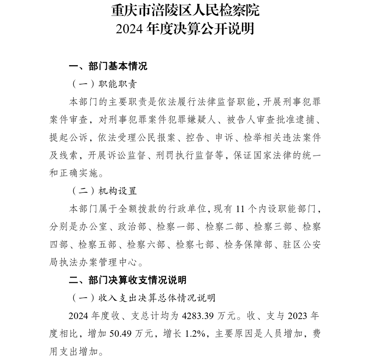 重庆市涪陵区人民检察院2024年度部门决算
