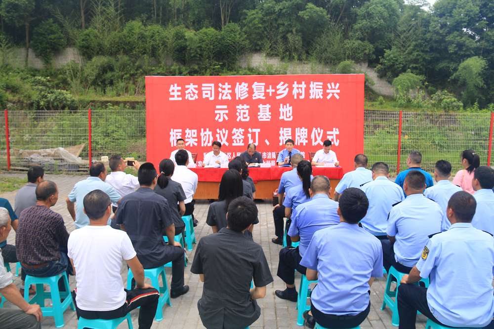 为进一步落地落实长江生态检察官制度,发挥法治助推乡村振兴的最大实效。2022年5月25日,涪陵区检察院联合区法院、区农委、区水利局、南沱镇五家单位在涪陵区南沱镇睦和村建立“生态司法修复+乡村振兴”示范基地,共同探索将基地打造成集“渔、林、农、文、旅”为一体的综合性、多元化生态司法修复基地。当天,五家单位联合签署了框架协议并共同为基地揭牌。