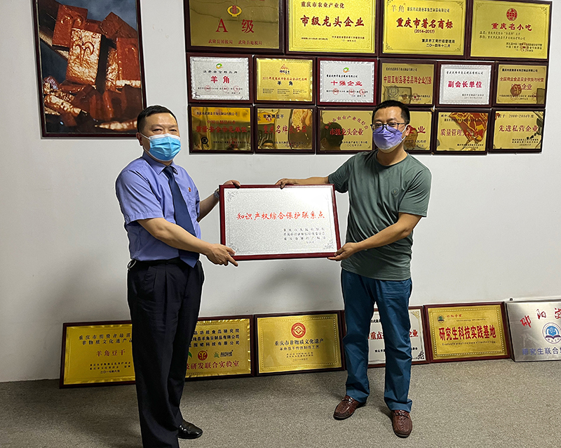 5月9日,三分院党组成员、副检察长黄常明带队走访知识产权综合保护联系企业重庆羊角豆制品有限公司。