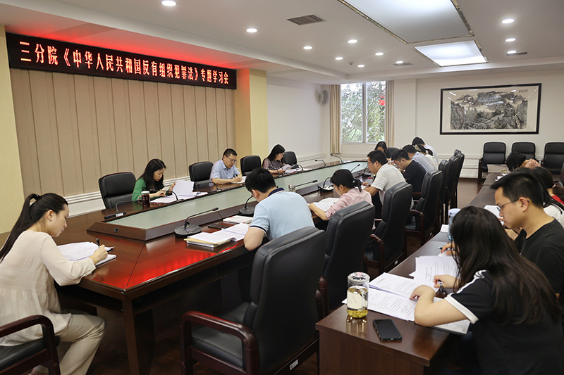 为加深对《中华人民共和国反有组织犯罪法》理解,推进扫黑除恶斗争工作常态化开展。6月13日下午,三分院党组成员、副检察长黄常明,刑检部门主要负责人和全体员额检察官、检察官助理、书记员共20余人参加《反有组织犯罪法》专题学习,检察一部副主任况梅对该法进行领学,对其中的新概念及六大亮点进行了解读,助推刑检办案人员在办理有组织犯罪中对法条的理解与适用。