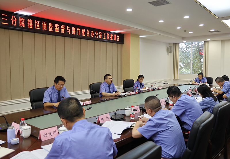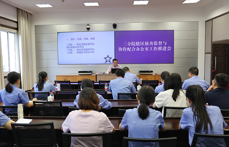 为进一步强化侦查监督职能与构建新型检警关系,促进全辖区侦查监督与协作配合办公室工作全面、协调发展,6月24日,市检察院三分院召开辖区侦查监督与协作配合办公室工作推进会。与会人员到涪陵区院侦协办实地观摩工作运行情况、了解主要做法。各院围绕各自侦协办工作特色和亮点进行了深入地交流和学习,会议还邀请市院负责侦协办工作的检察官授课。会上,黄常明副检察长对侦协办工作推进做出重要部署,辖区各院分管侦协办的院领导及部门负责人参加了会议。